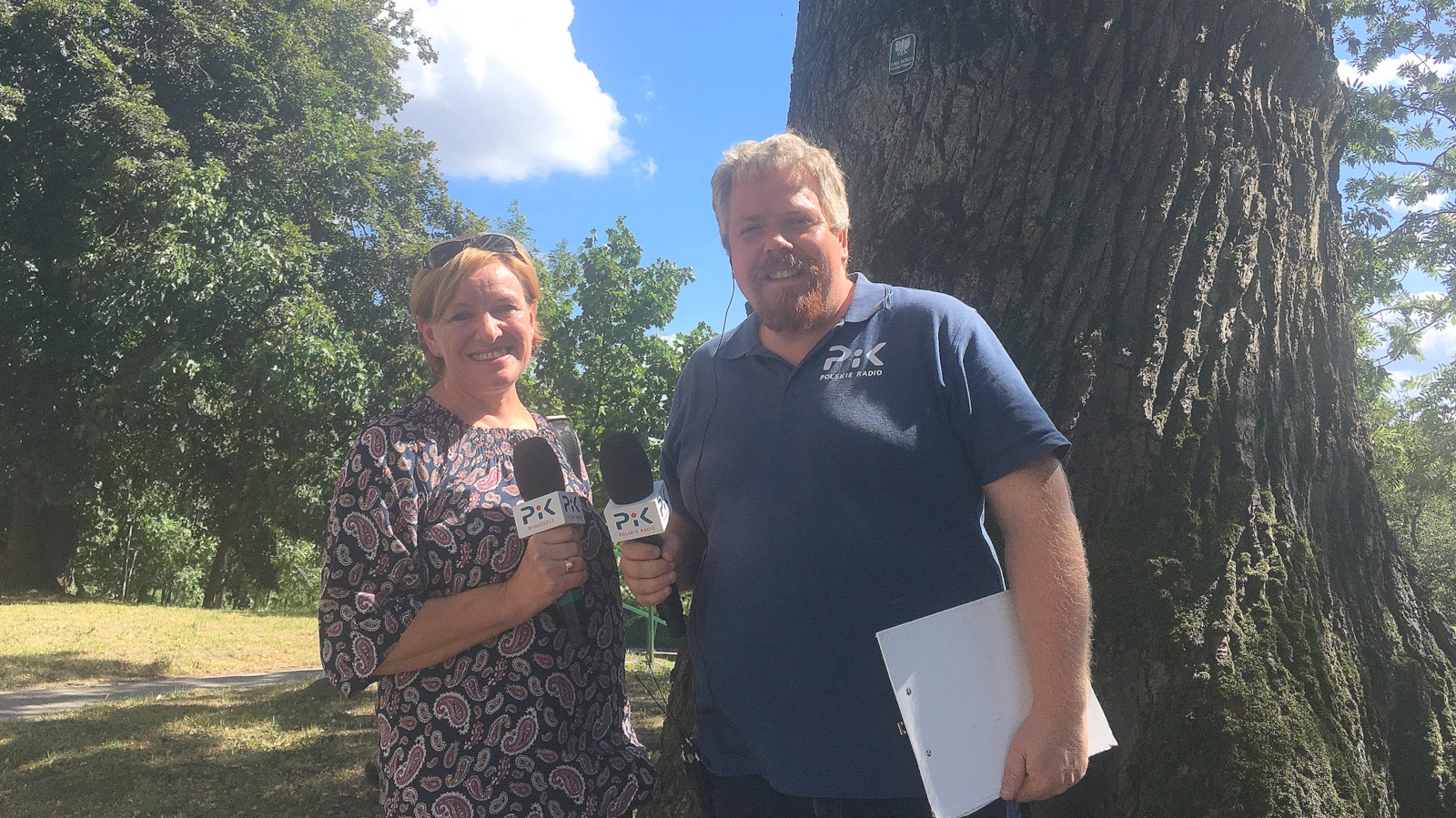 Wakacyjny Piknik w Łabiszynie - Rozmowa z historykiem, Maciejem Banasiem i ks. Krzysztofem Sobieralskim. O historii miasta, ponad 600 letnim Dębie posadzonym przez Władysława Jagiełłę oraz architekturze kościoła pw. Św. Mikołaja. i grobowcach we wnętrzu.