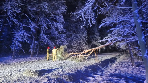 Przewrócone drzewa, powalone słupy energetyczne. Strażacy pracowali całą noc [zdjęcia]