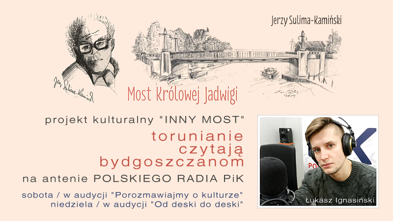 Na antenie Polskiego Radia PiK realizujemy projekt kulturalny "Inny most" . Pod hasłem "Torunianie czytają bydgoszczanom", fragmenty powieści Jerzego Sulimy-Kamińskiego pt. "Most Królowej Jadwigi" czytać będą przedstawiciele toruńskiej kultury i nie tylko .