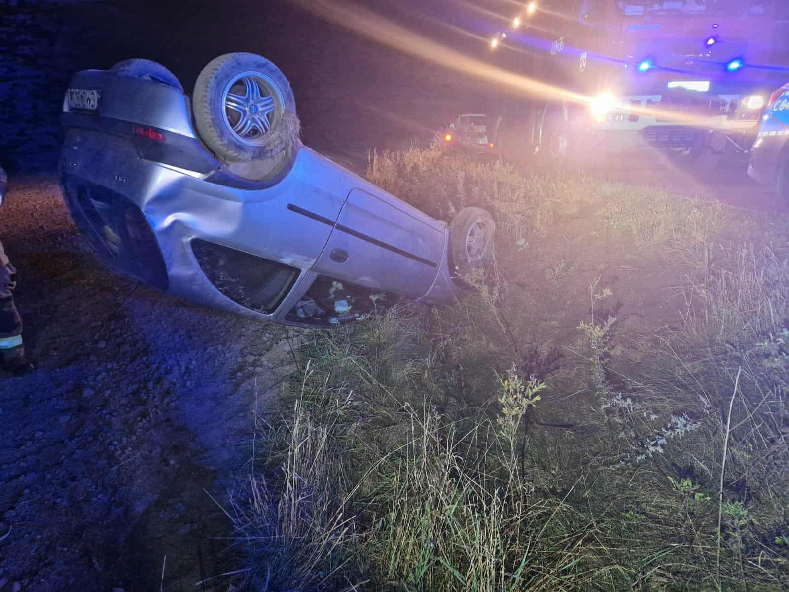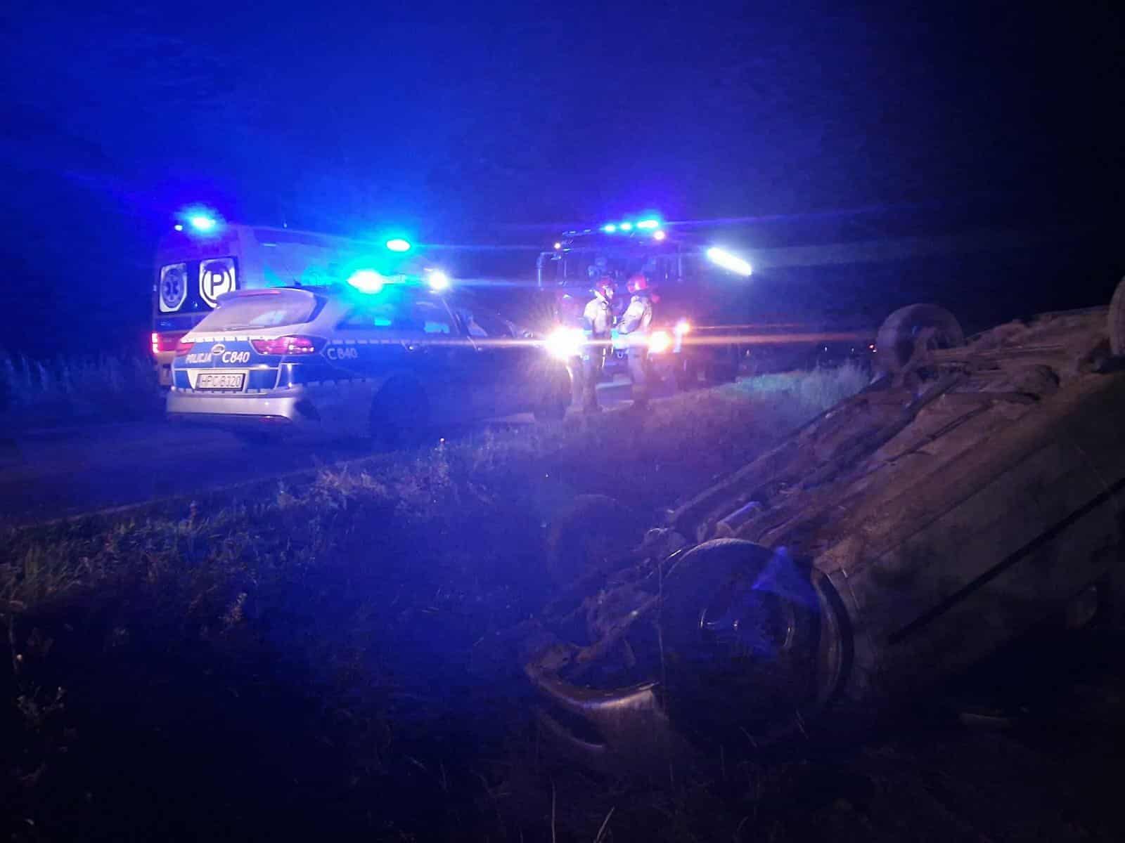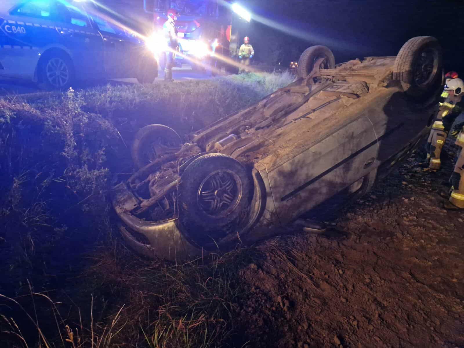 Łąkie. Nocne dachowanie samochodu w gminie Strzelno. Kierowcy nic się nie stało [zdjęcia]