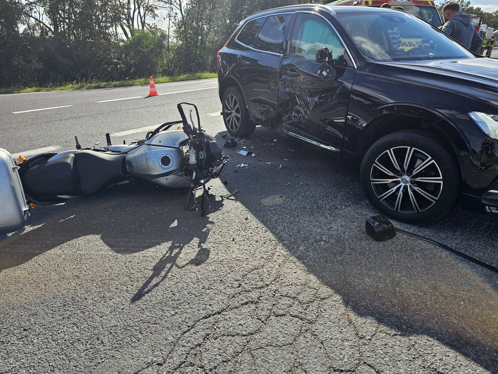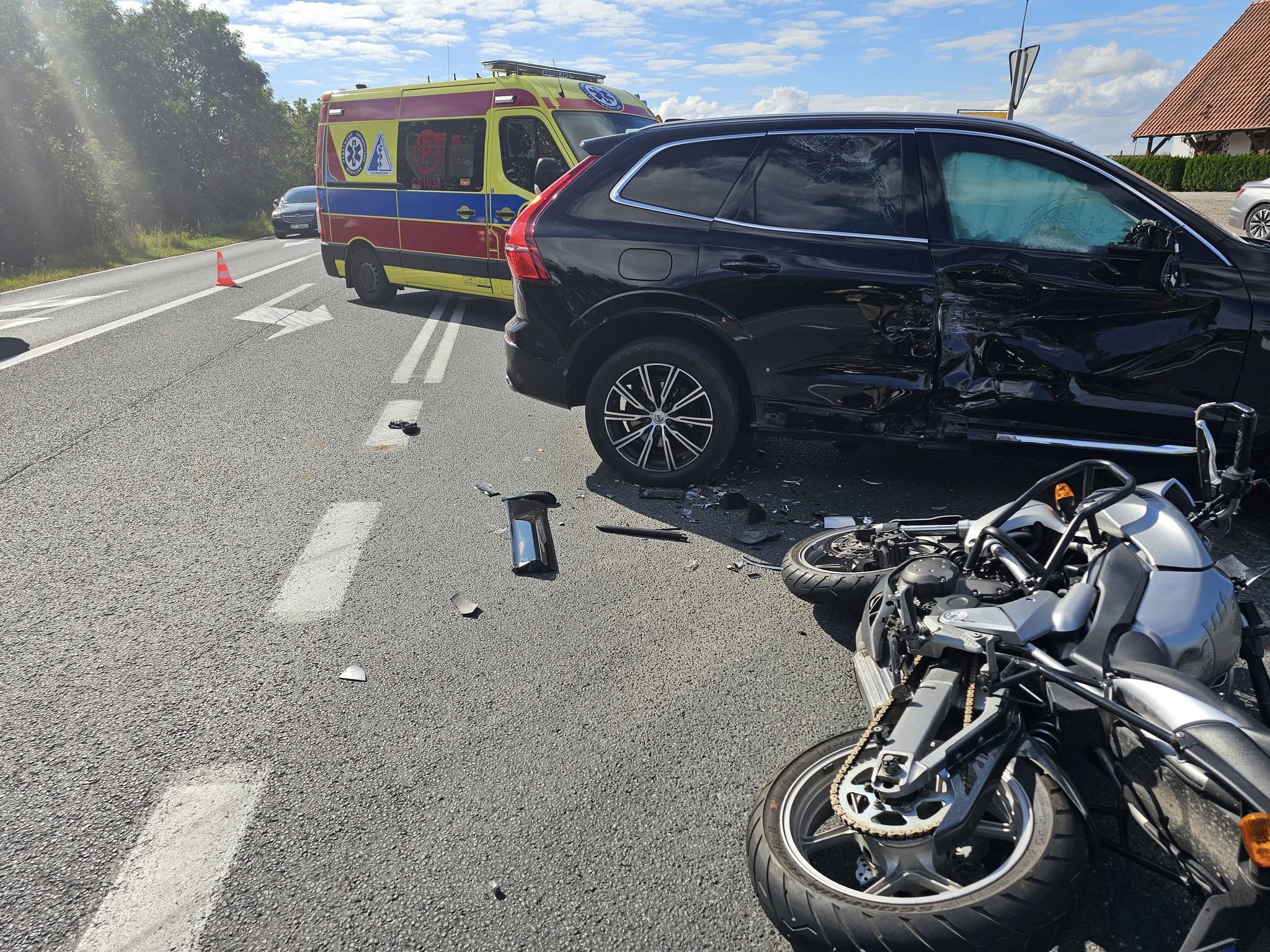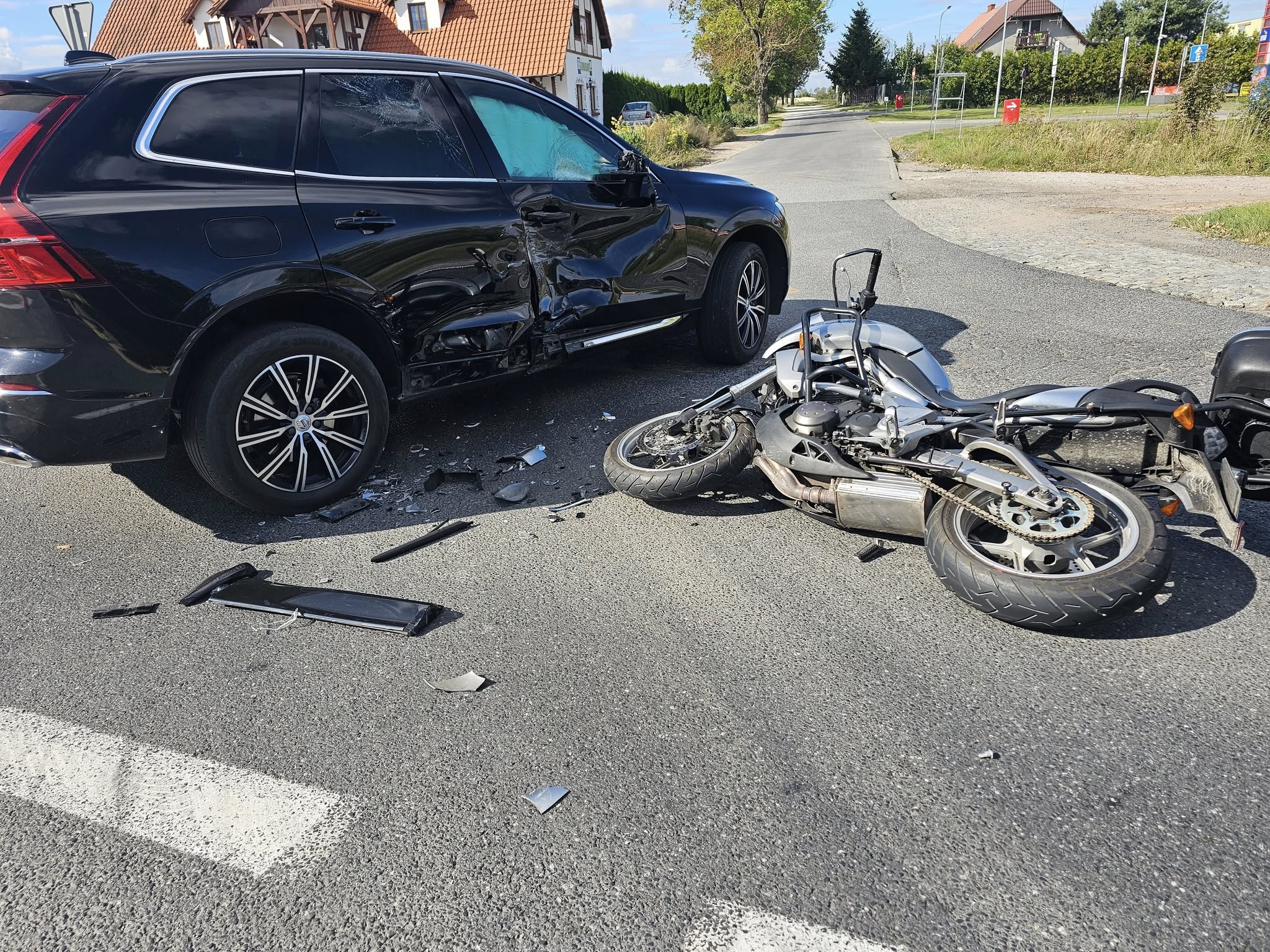Busewo. Motocykl zderzył się z samochodem osobowym w powiecie mogileńskim [zdjęcia]