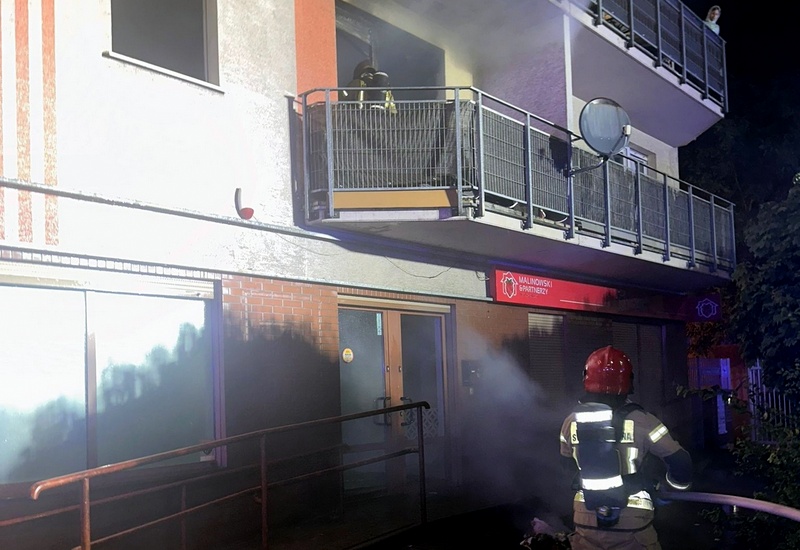 Nocny pożar bloku w Toruniu/fot. Krystian Kociński/KM PSP Toruń/Facebook