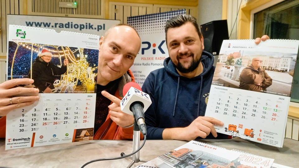 Fotoreporter Piotr Ulanowski (z lewej) i Adam Goździewski (z prawej) prezentują kalendarz z 2024 roku/fot. Tatiana Adonis/archiwum