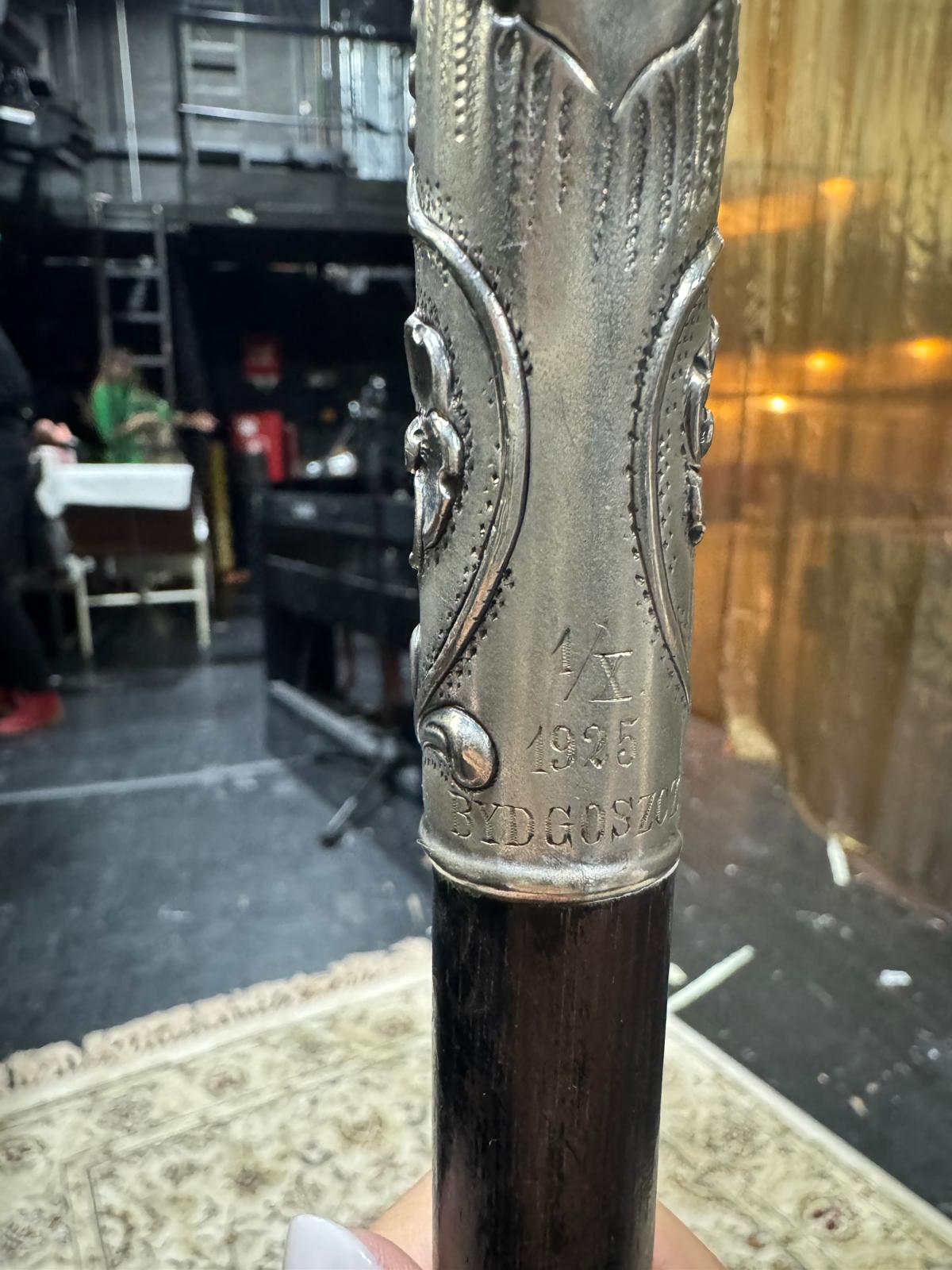 - Niestety, jeśli chodzi konkretnie o tę laskę, to niestety nie wiemy, nie udało się naszej rekwizytorce dociec, skąd się tu wzięła. Mogła do nas trafić podarowana przez kogoś 10, 40, jak i 50 lat temu. Nieraz widzowie sami się do nas zgłaszają i mówią, że mają, np. stare przedwojenne walizki albo inne tego typu rzeczy. Robią porządki i chcieliby te przedmioty przekazać, na przykład teatrowi, aby rzecz zyskały drugie życie, zagrały w spektaklach. I tak się zresztą bardzo często zdarza.