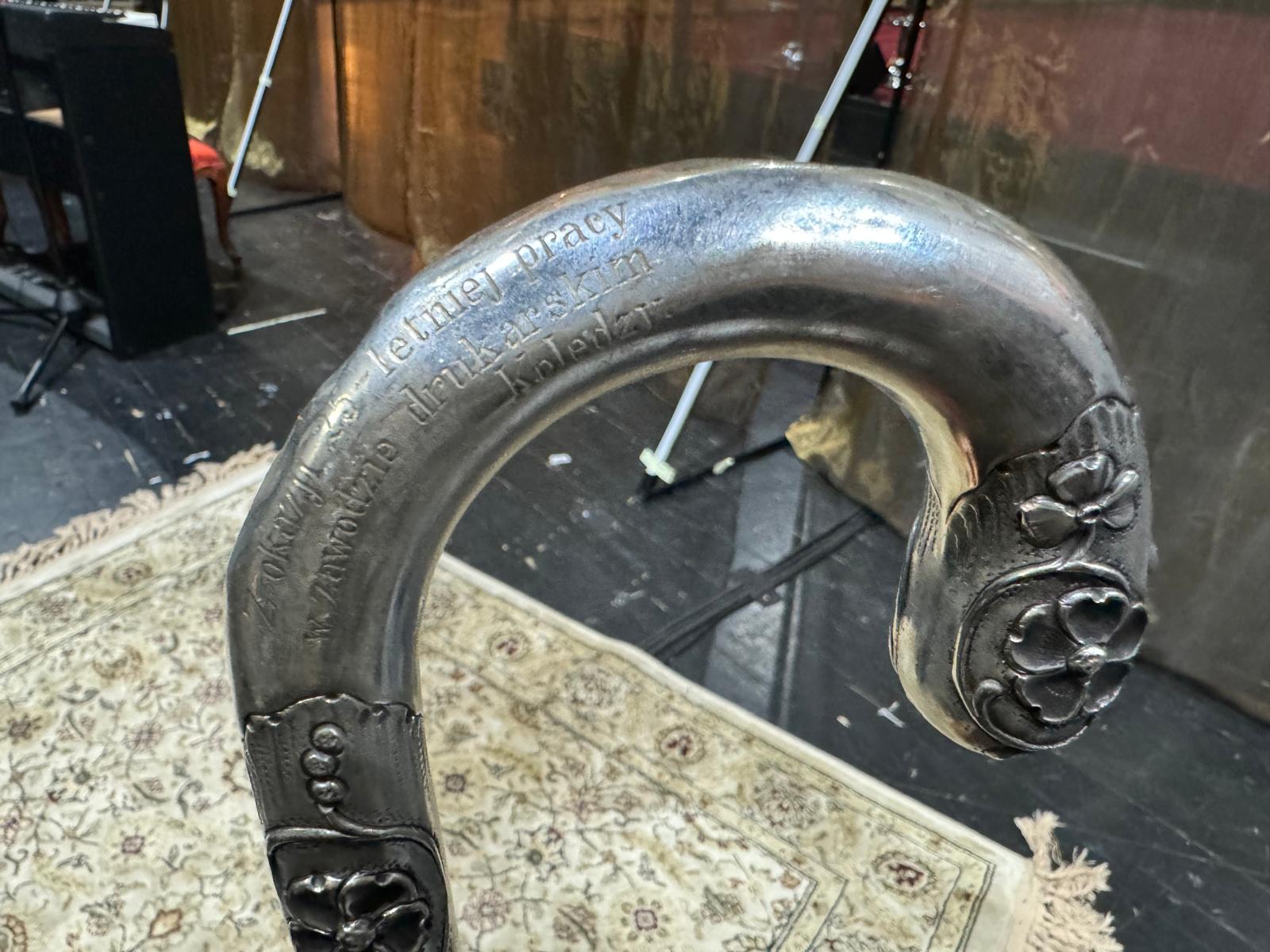 Okazja do świętowania związana jest z inskrypcją wygrawerowaną na rączce rekwizytu. To właśnie dzięki niej wiadomo, że laska została ofiarowana równo sto lat temu. Grawer głosi: „Z okazji 25-letniej pracy w zawodzie drukarskim. Koledzy. 1 X 1925, Bydgoszcz”.