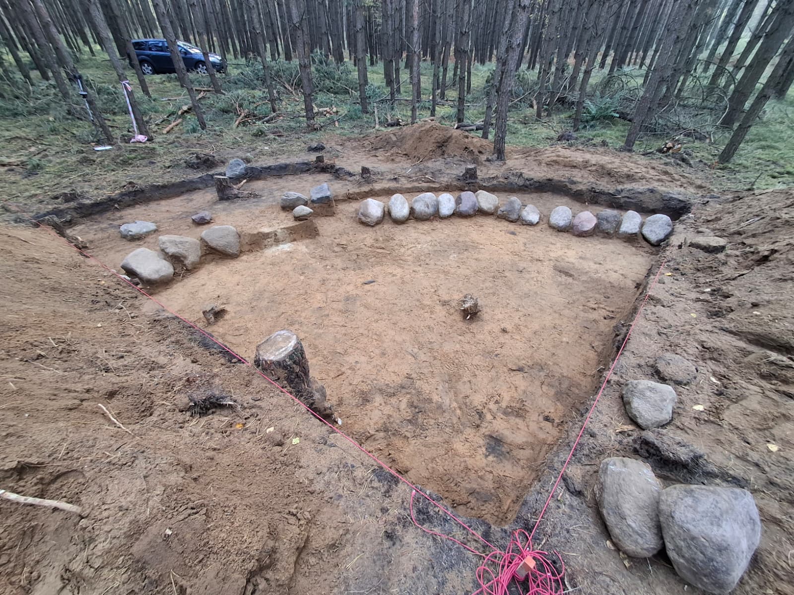 - Tym razem cofnęliśmy się do przełomu epoki brązu i żelaza. Znaleźliśmy kurhan związany prawdopodobnie z kulturą łużycką - mówi Mateusz Sosnowski z Wdeckiego Parku Krajobrazowego. - To wyjątkowe znalezisko, do tej pory nie notowane na naszych terenach, w Borach Tucholskich. Mamy tu świetnie zachowany wieniec kamienny wokół kurhanu, co jest charakterystyczne właśnie dla miejsc pochówku z tego okresu. Kamienie pokazują granice kopca grzebalnego.
