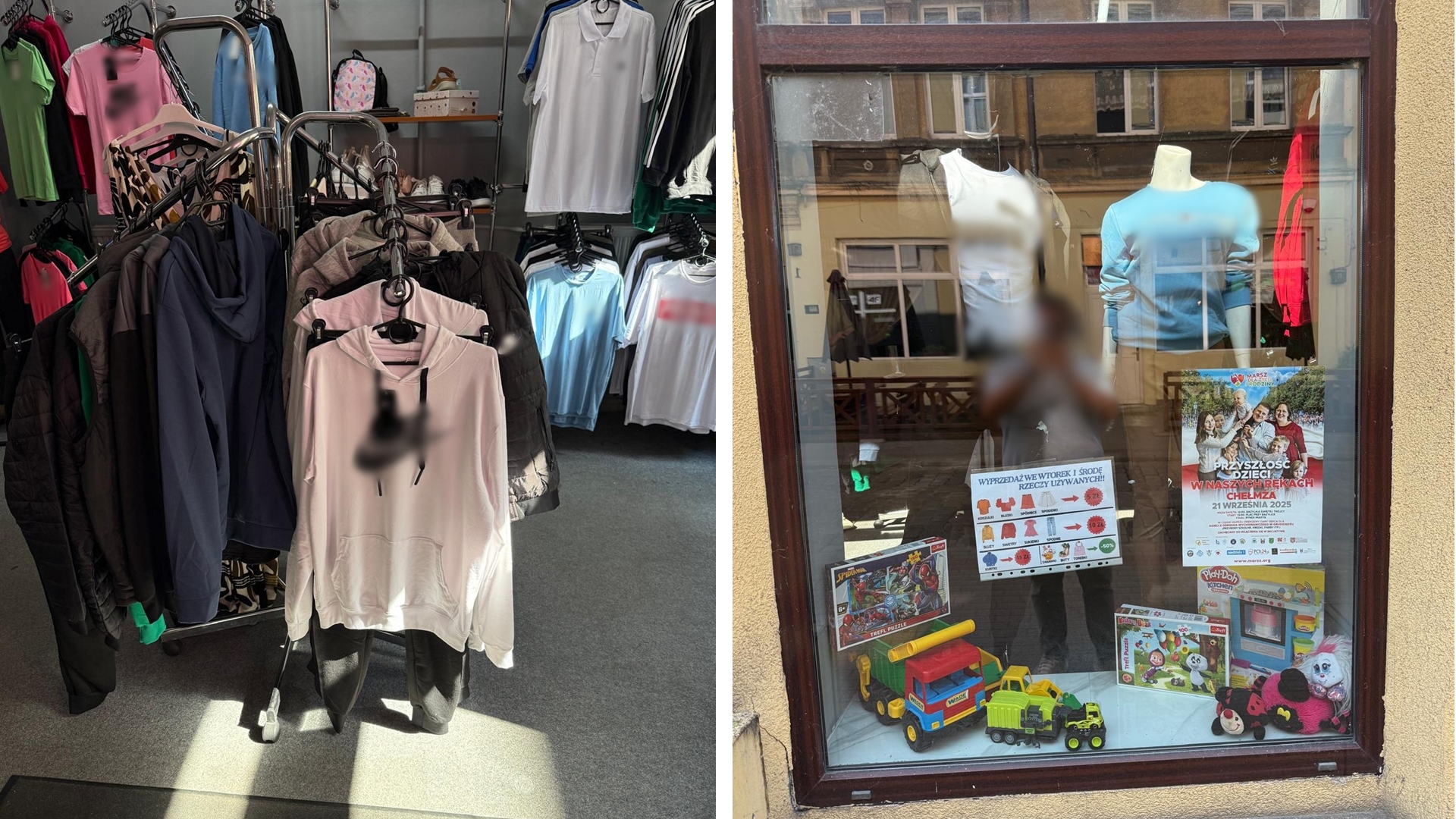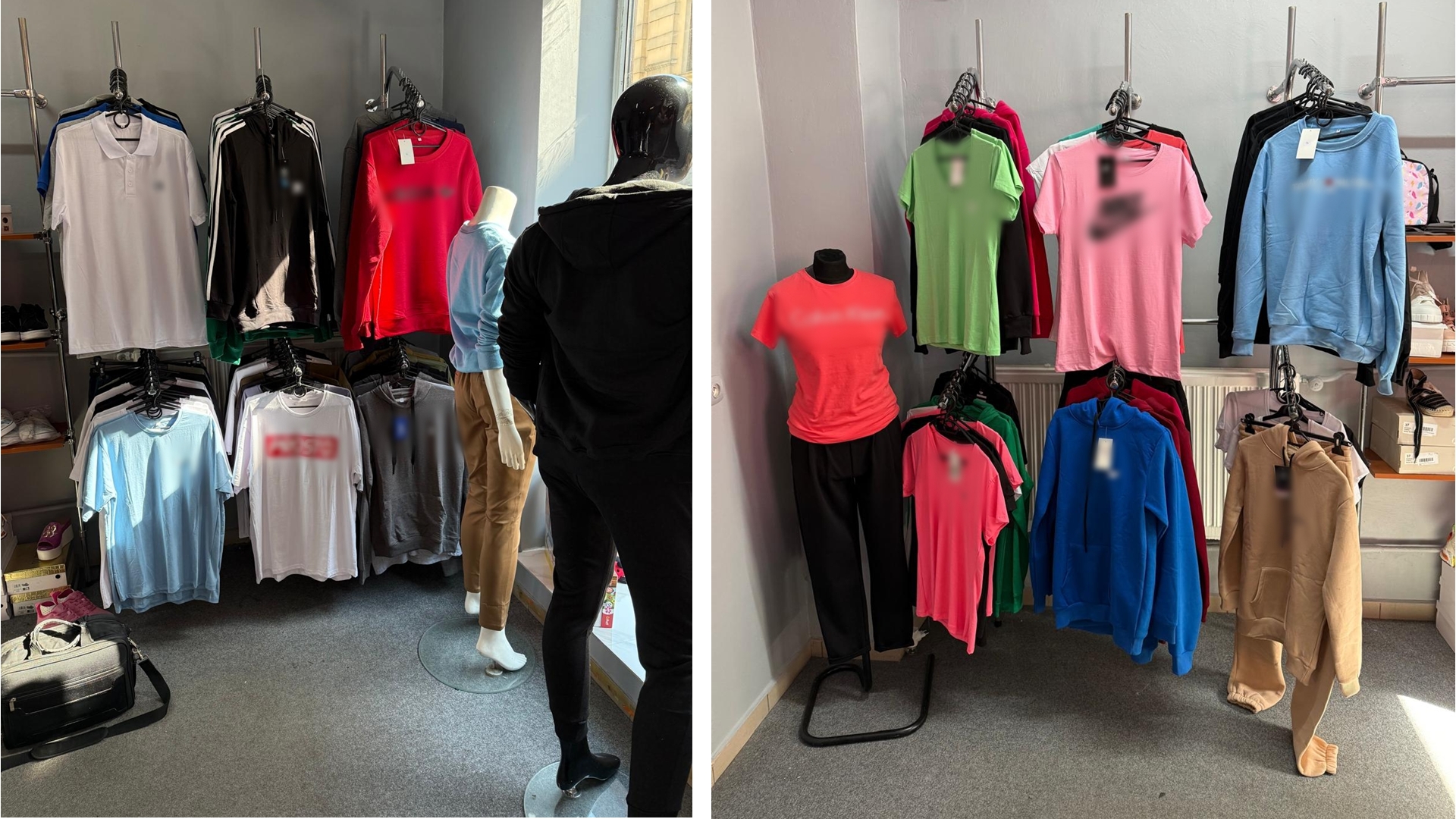 W trakcie prowadzonych działań kontrolnych w zakresie prawidłowości ewidencjonowania sprzedaży za pomocą kas rejestrujących na targowisku „Pchli Targ" we Włocławku, funkcjonariusze kujawsko-pomorskiej Służby Celno-Skarbowej zauważyli stoisko, na którym znajdowała się odzież z podrobionymi znakami towarowymi. Na stoisku nie zastano właściciela towaru. Ustalono, że opuścił targowisko porzucając towar. Funkcjonariusze KAS zatrzymali 301 szt. odzieży naruszającej prawa własności intelektualnej.