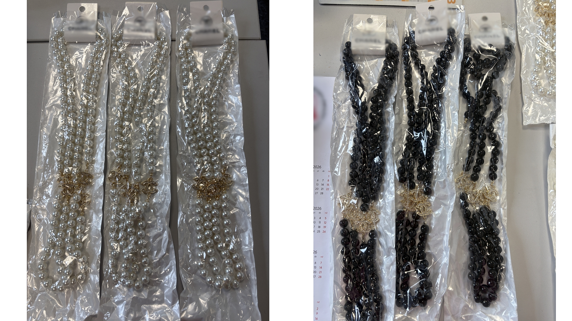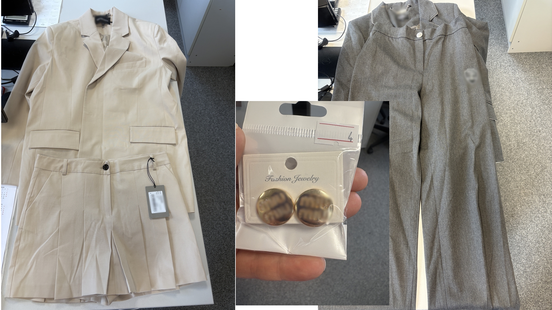 W związku z podejrzeniem naruszenia praw własności intelektualnej części przywożonych towarów, funkcjonariusze KAS zatrzymali 137 szt. kompletów odzieży i biżuterii znanych, światowych marek. Szacowana wartość rynkowa zatrzymanych podróbek wyniosła ponad 745 tys. zł.