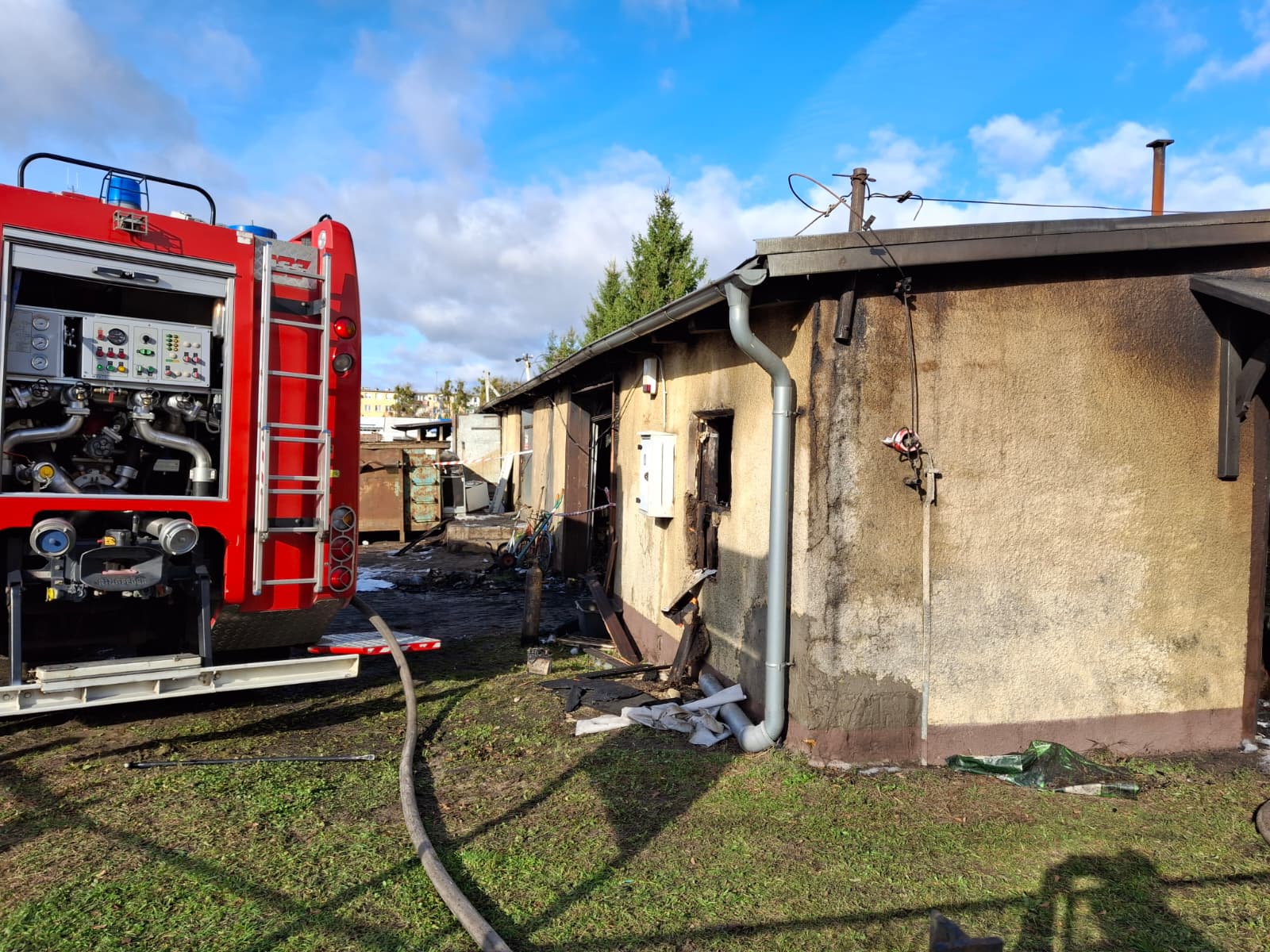 Nocny pożar w Tucholi. Spłonęła stolarnia, warsztat i skup złomu przy ul. Chopina [zdjęcia]