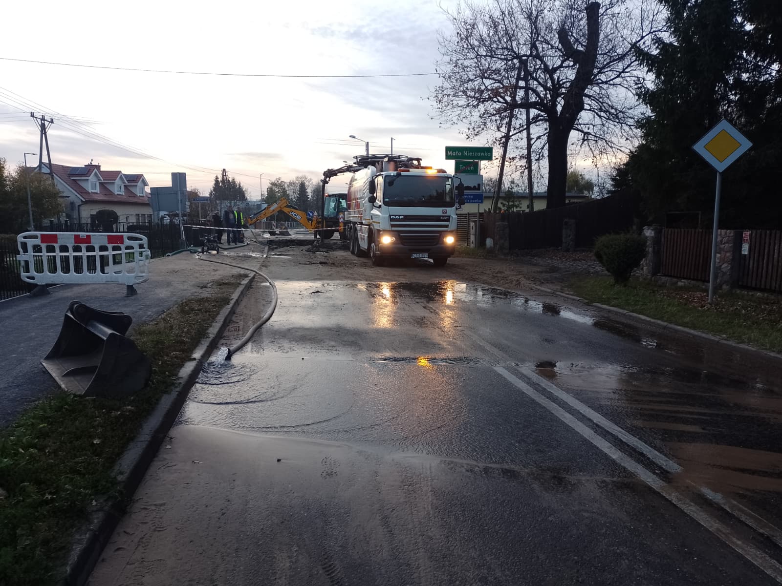 W związku z awarią wodociągu na ul. Nieszawskiej, przy skrzyżowaniu z ul. Poziomkową trwają prace mające na celu jej usunięcie i przywrócenie ruchu w obu kierunkach. Wprowadzono zmiany komunikacyjne.