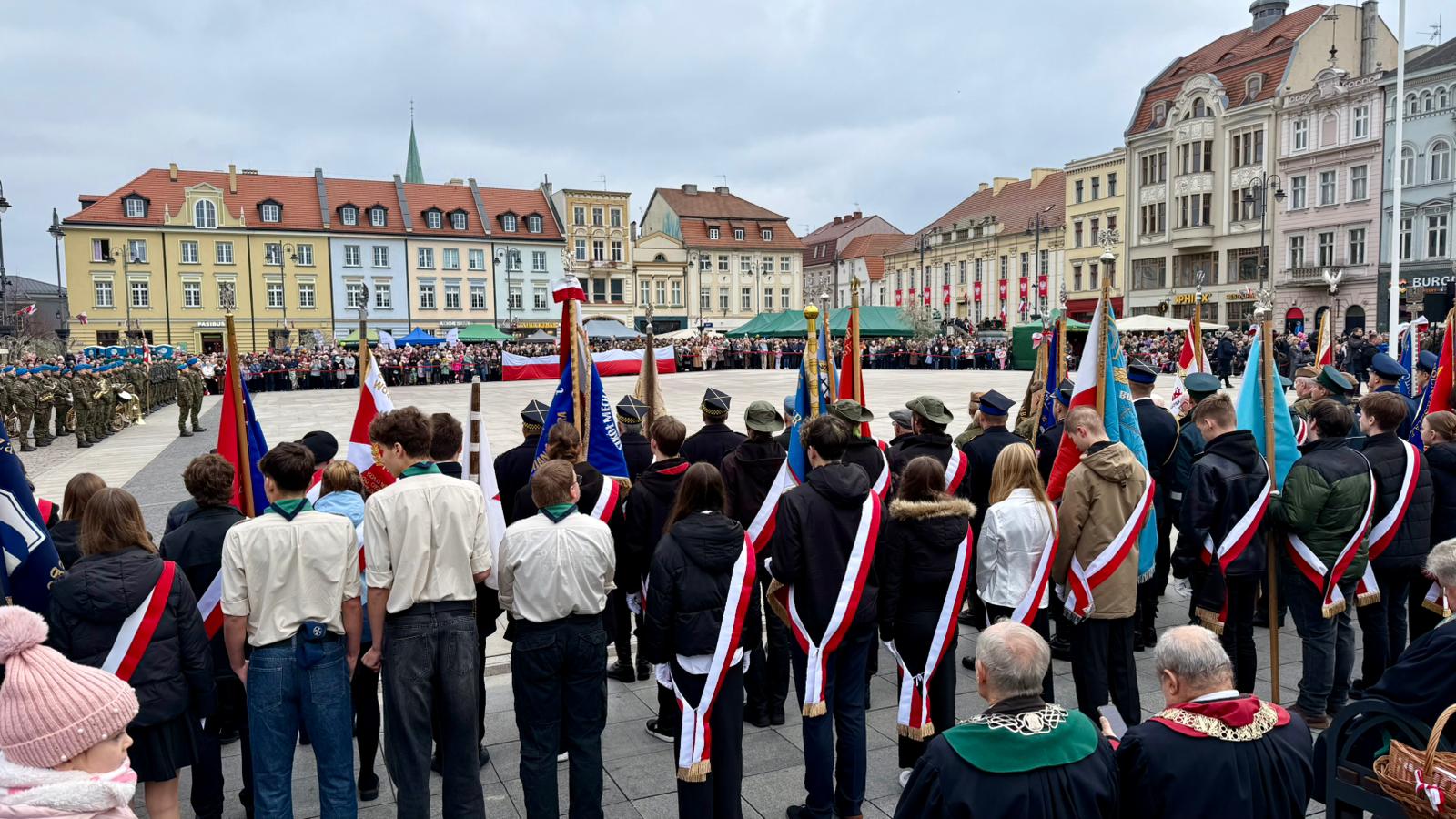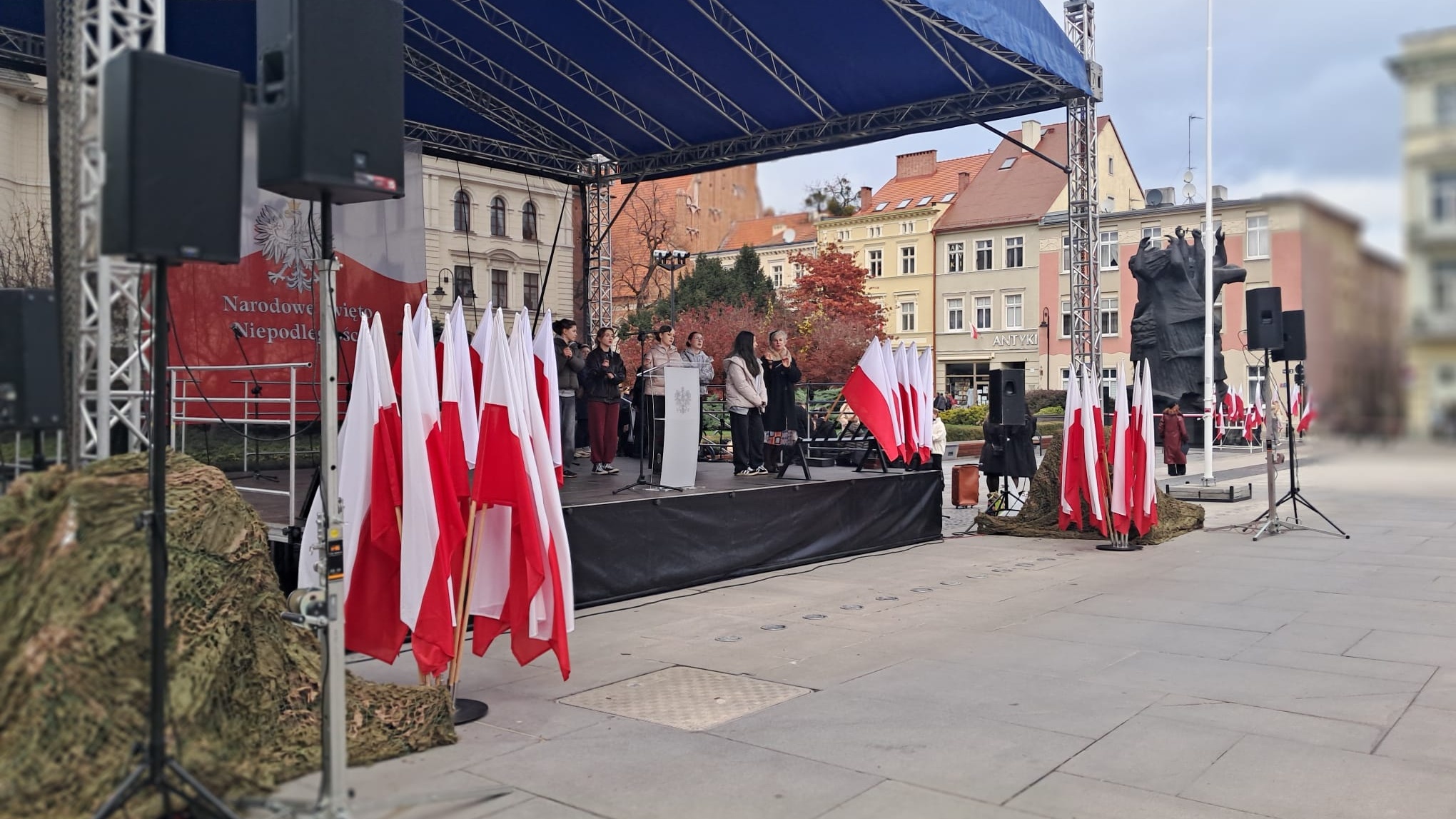 W Toruniu na Rynku Staromiejskim odbywała się uroczystość patriotyczna, a potem władze województwa i samorządowe złożyły kwiaty w imieniu wszystkich mieszkańców pod pomnikiem Marszałka Józefa Piłsudskiego.