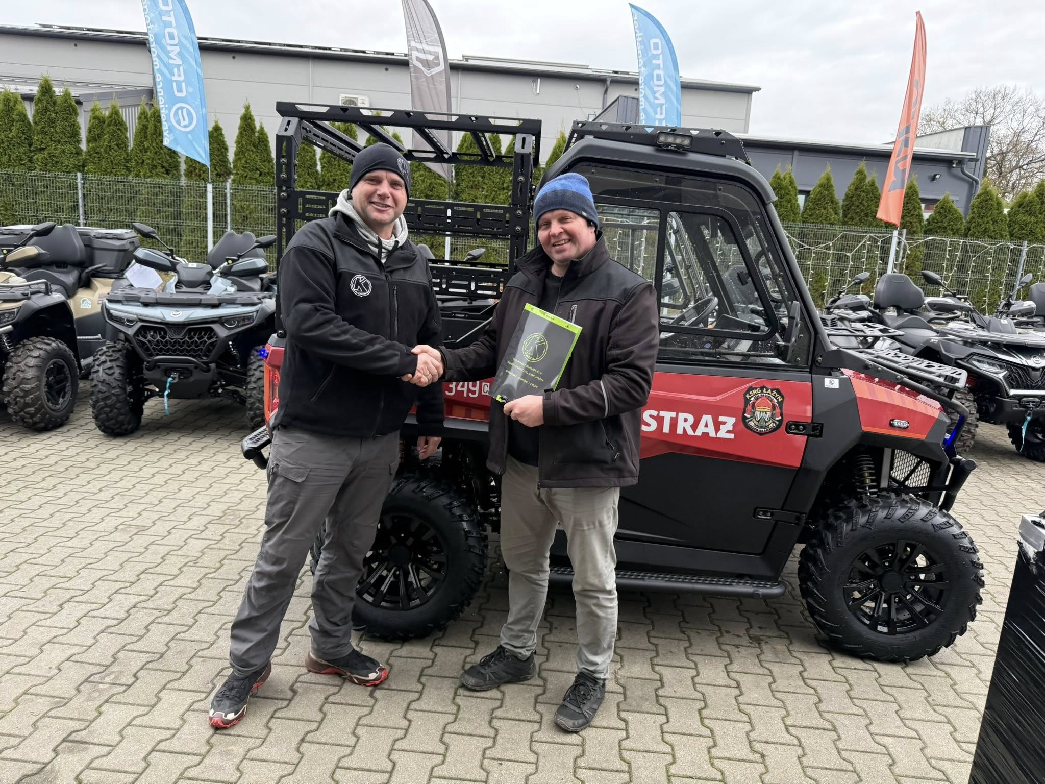 Ochotnicza Straż Pożarna w Łążynie prezentuje swój nowy samochód - pierwszy w województwie Kujawsko-Pomorskim w zasobach OSP i drugi w strukturze straży pożarnej pojazd wielozadaniowy UTV - Utility Task Vehicle marki Hisun Motors Polska.