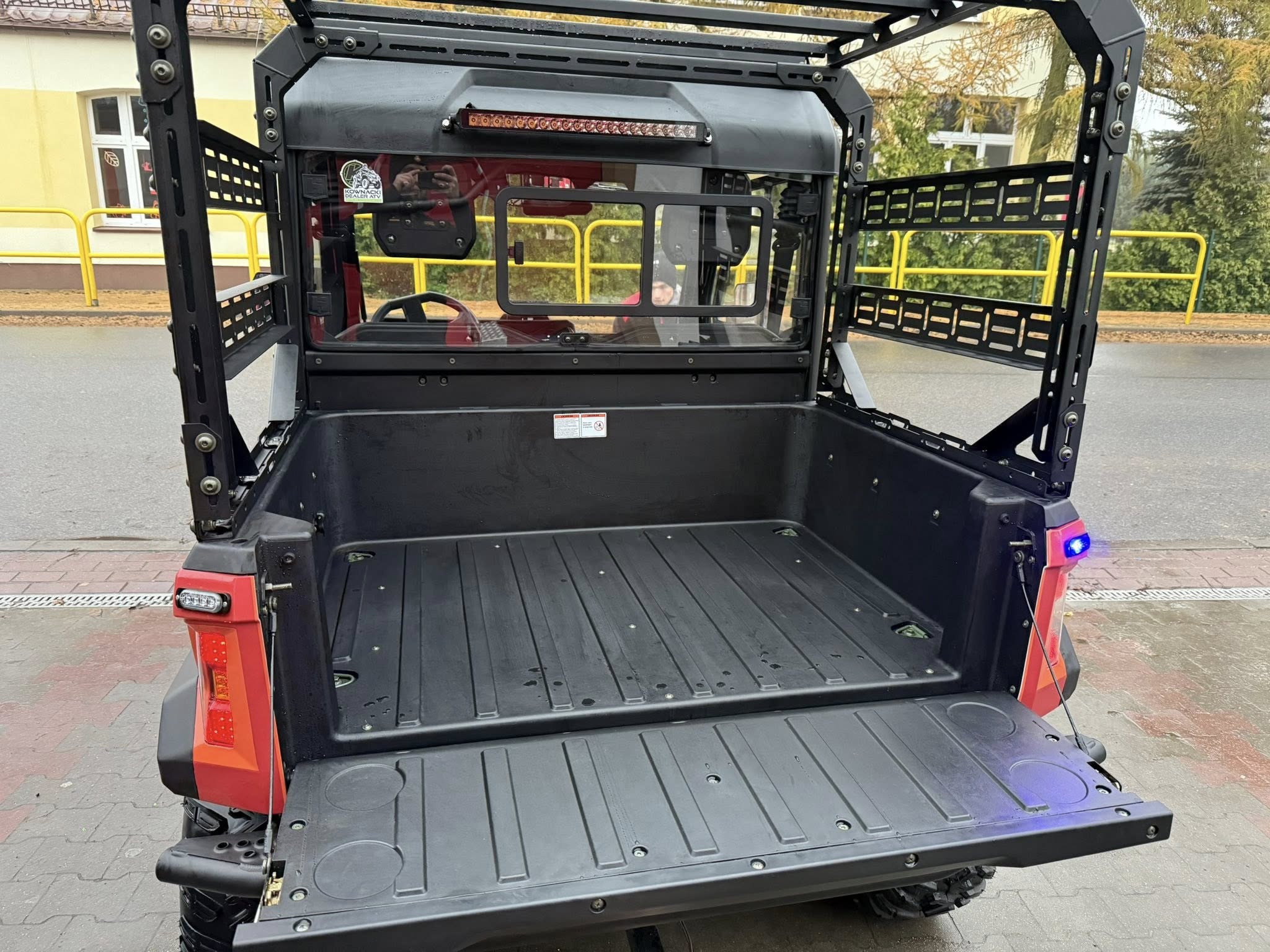 Uchylna skrzynia ładunkowa pozwala na transport 300 kg ładunku oraz jego łatwy rozładunek. Metalowy stelaż zabudowy, bagażnik dachowy i przedni dają nieograniczone możliwości konfiguracji mocowania sprzętu i dodatkowego wyposażenia.
