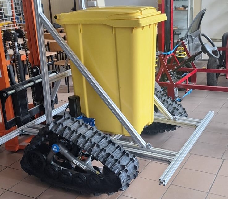 Naukowcy z Politechniki Bydgoskiej tworzą... autonomiczny pojemnik na odpady. 200-litrowy śmietnik osadzony jest na gąsienicach. Ma się sam przemieszczać i reagować na głos.