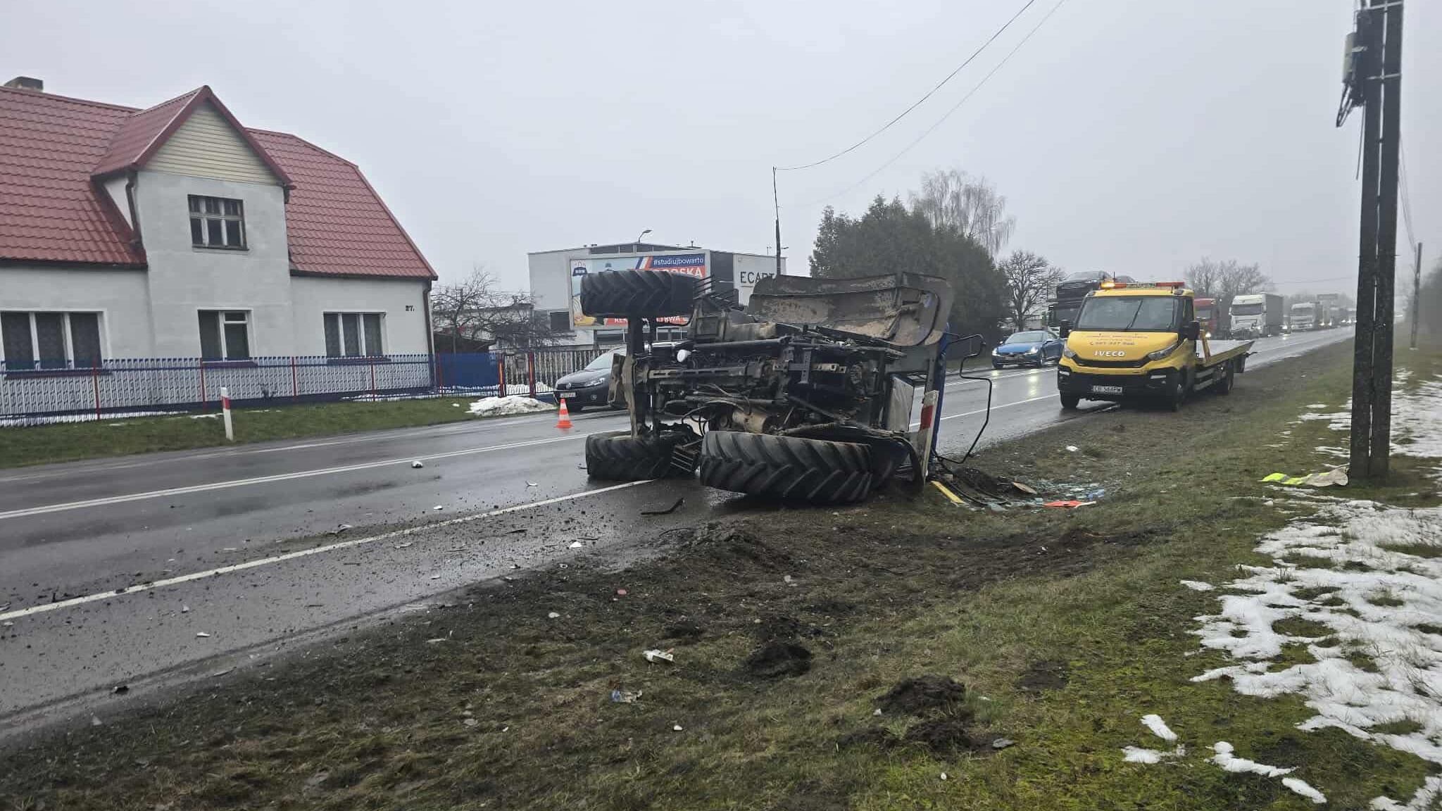 Samochód osobowy zderzył się z ciągnikiem w podbydgoskiej Brzozie/fot. Heron15 Pomoc Drogowa Bydgoszcz 24h Andruszczenko Krystian 501337500