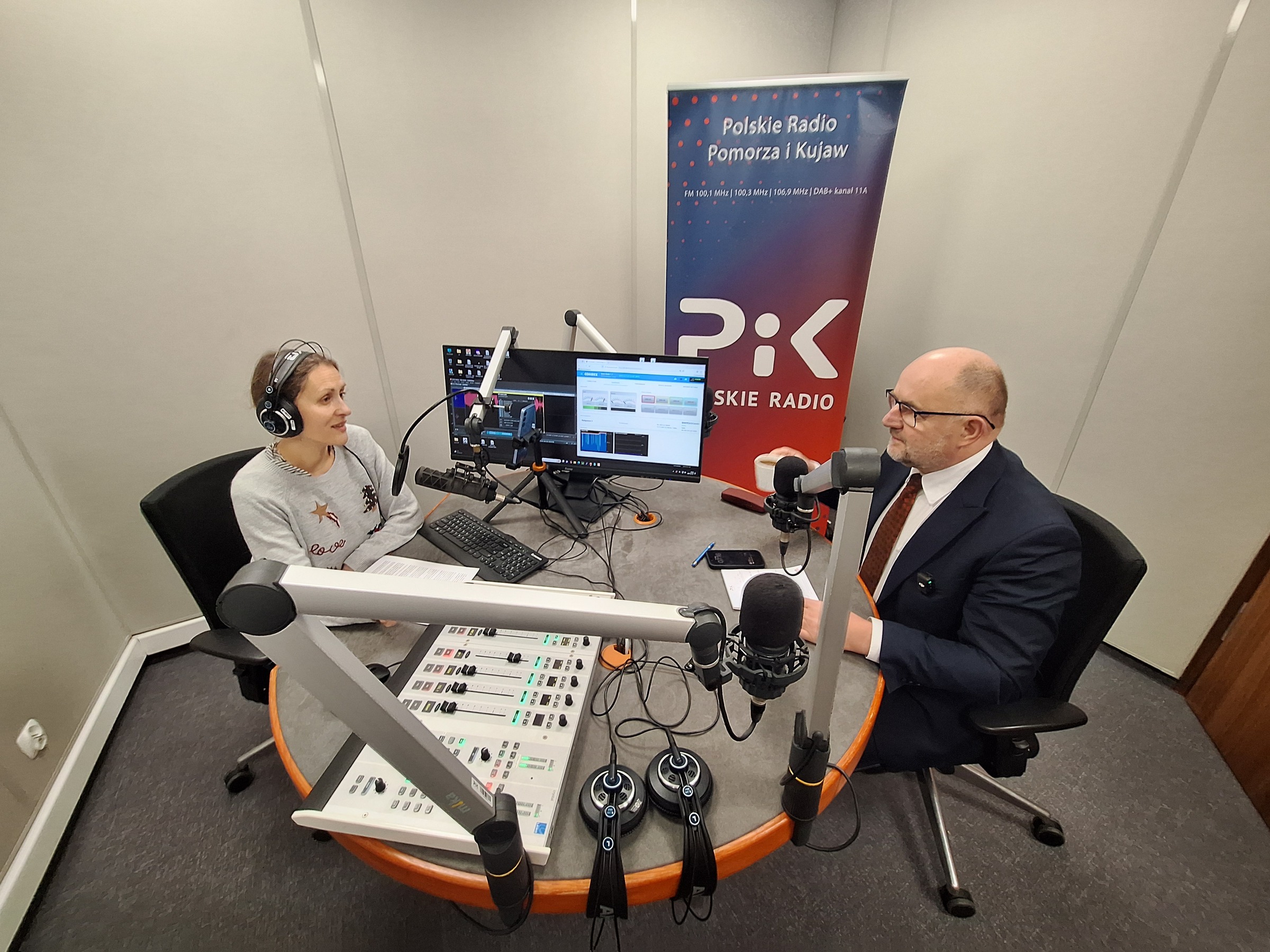 Piotr Całbecki w toruńskim studiu PR PiK. / Fot. Tomasz Bielicki