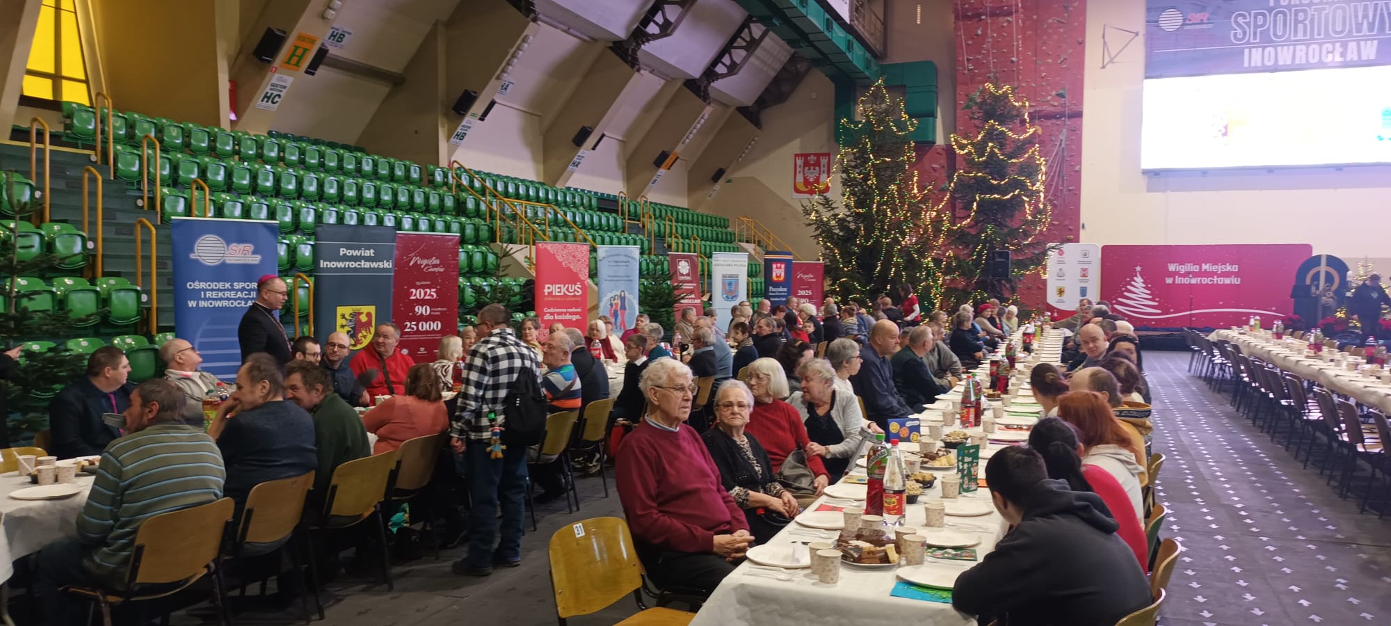 W hali widowiskowo-sportowej czekały na nich znane wigilijne potrawy takie jak groch z kapustą, śledzie i karp.