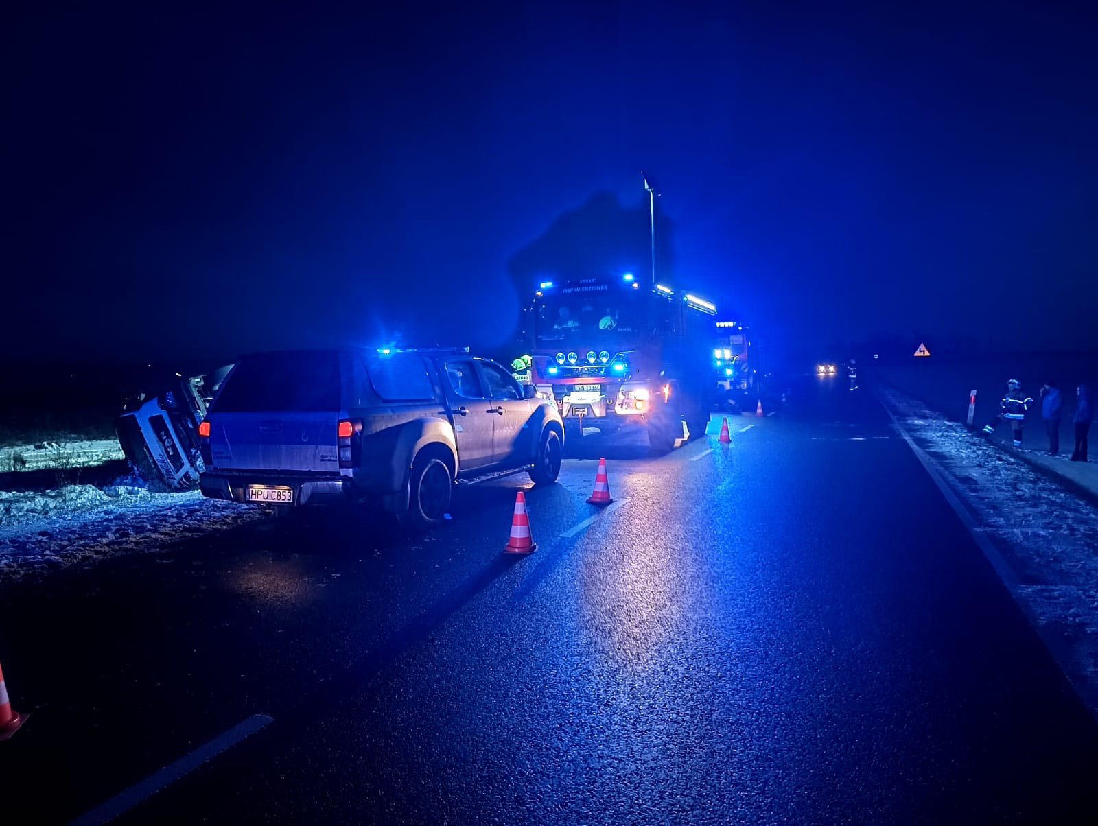 Dachowanie ciężarówki wiozącej mleko koło Tomisławic. Trasa była zablokowana