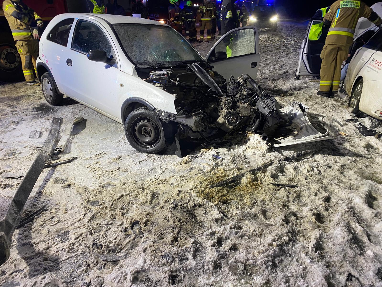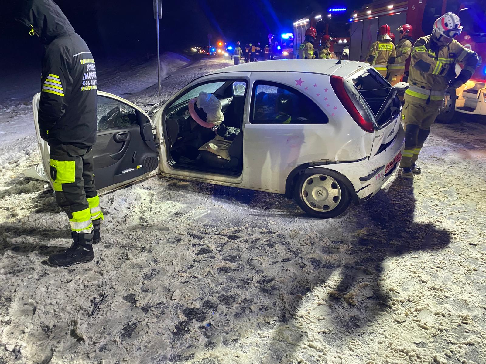 - Po przybyciu na miejsce okazało się, że doszło do zderzenia, w którym brały udział dwa auta osobowe i jedno auto ciężarowe - przekazał mł. bryg. Karol Smarz. - W wyniku tego zdarzenia kierująca jednym z pojazdów osobowych została uwięziona w aucie. Żeby ją wydostać, strażacy używali specjalistycznych narzędzi hydraulicznych. Nieprzytomna kobieta została przekazana jednemu z zespołów ratowniczo-medycznych obecnych na miejscu. Kolejną osobą, która odniosła obrażenia, jest pięcioletnie dziecko. Łącznie w tym zdarzeniu uczestniczyło siedem osób. Pozostałe opuściły pojazdy o własnych siłach. Droga krajowa nr 10 jest w tej chwili całkowicie zablokowana. Na miejscu lądował śmigłowiec Lotniczego Pogotowia Ratunkowego.