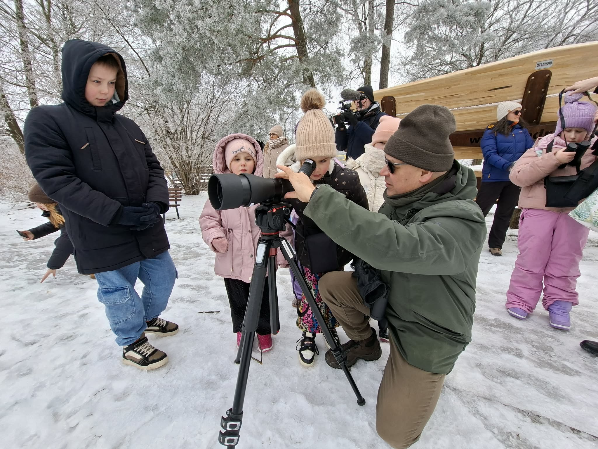 - Pokazały nam się kosy - to charakterystyczny, większy czarny ptak z żółtym, a czasami pomarańczowym dziobem. Nad naszym karmnikiem przeleciał kormoran - od karmnika do wody. Nad wodą dominowały kaczki krzyżówki, między nimi pływały łabędzie nieme, gągoły czy nurogęś. Bardzo miłym elementem były również szybujące bieliki.