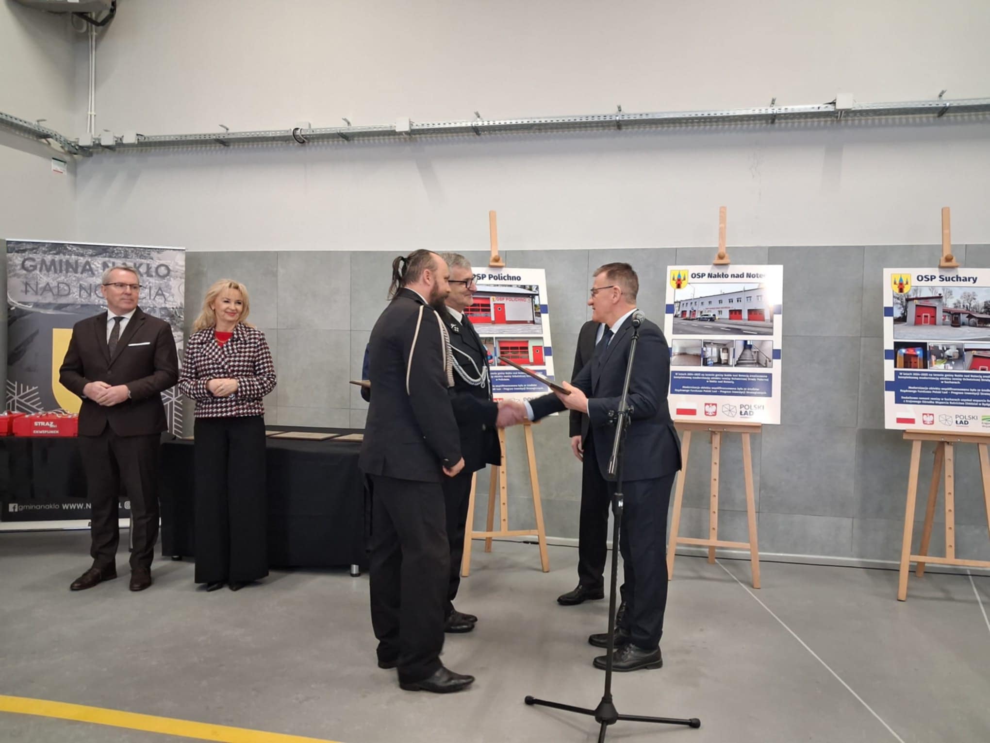 - Na stałe będzie to siedziba Ochotniczej Straży Pożarnej w Paterku. 90 druhen i druhów będzie miało nową, imponującą remizę. To na czas pokoju, na czas normalnej służby strażackiej. W wypadku zagrożenia pomieszczenia OSP będą stanowiły magazyn powiatowy sprzętu do ochrony ludności - powiedział Piotr Hemmerling.