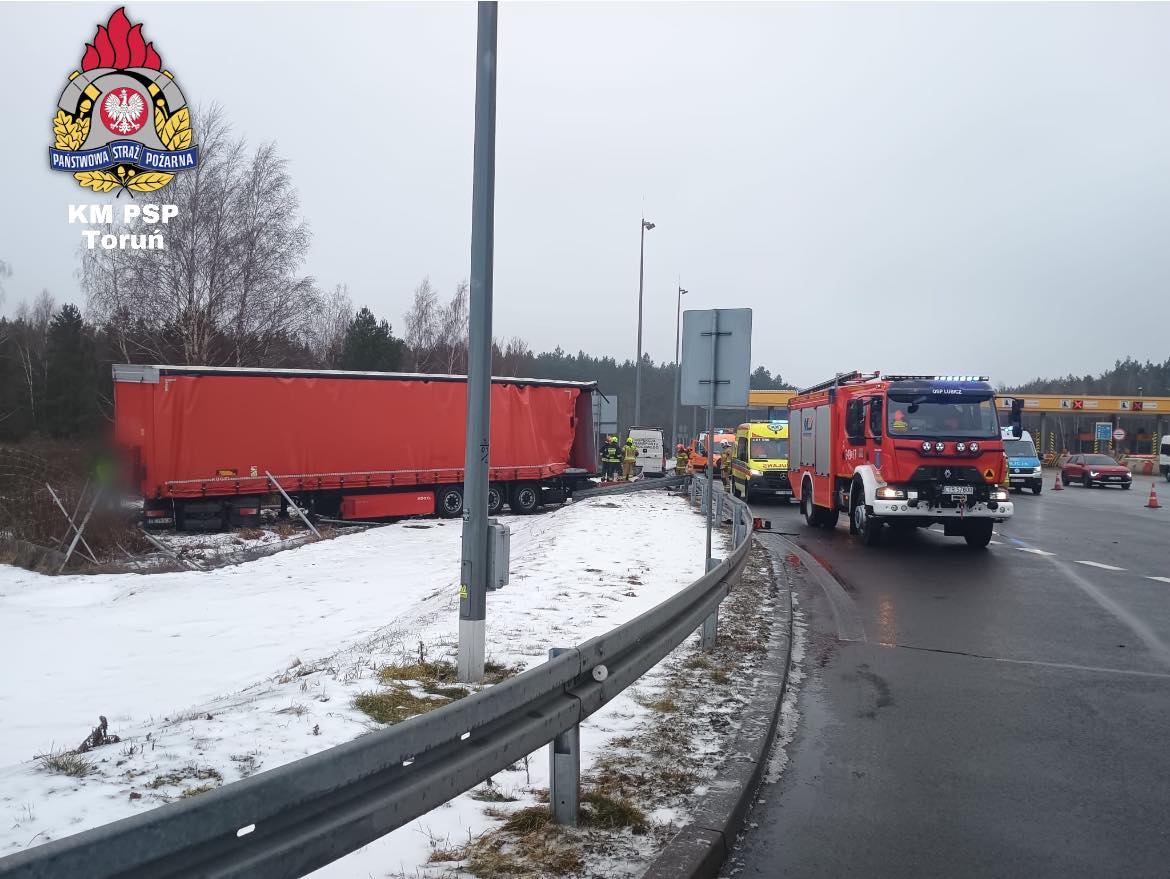 - 64-letni kierujący ciężarowym dafem z naczepą nie dostosował prędkości do warunków panujących na drodze. Najechał na punkt poboru opłat, a następnie na naczepę poprzedzającego go pojazdu ciężarowego - relacjonuje mł. asp. Sebastian Dobrzeniecki z toruńskiej policji. - Obaj kierowcy byli trzeźwi.