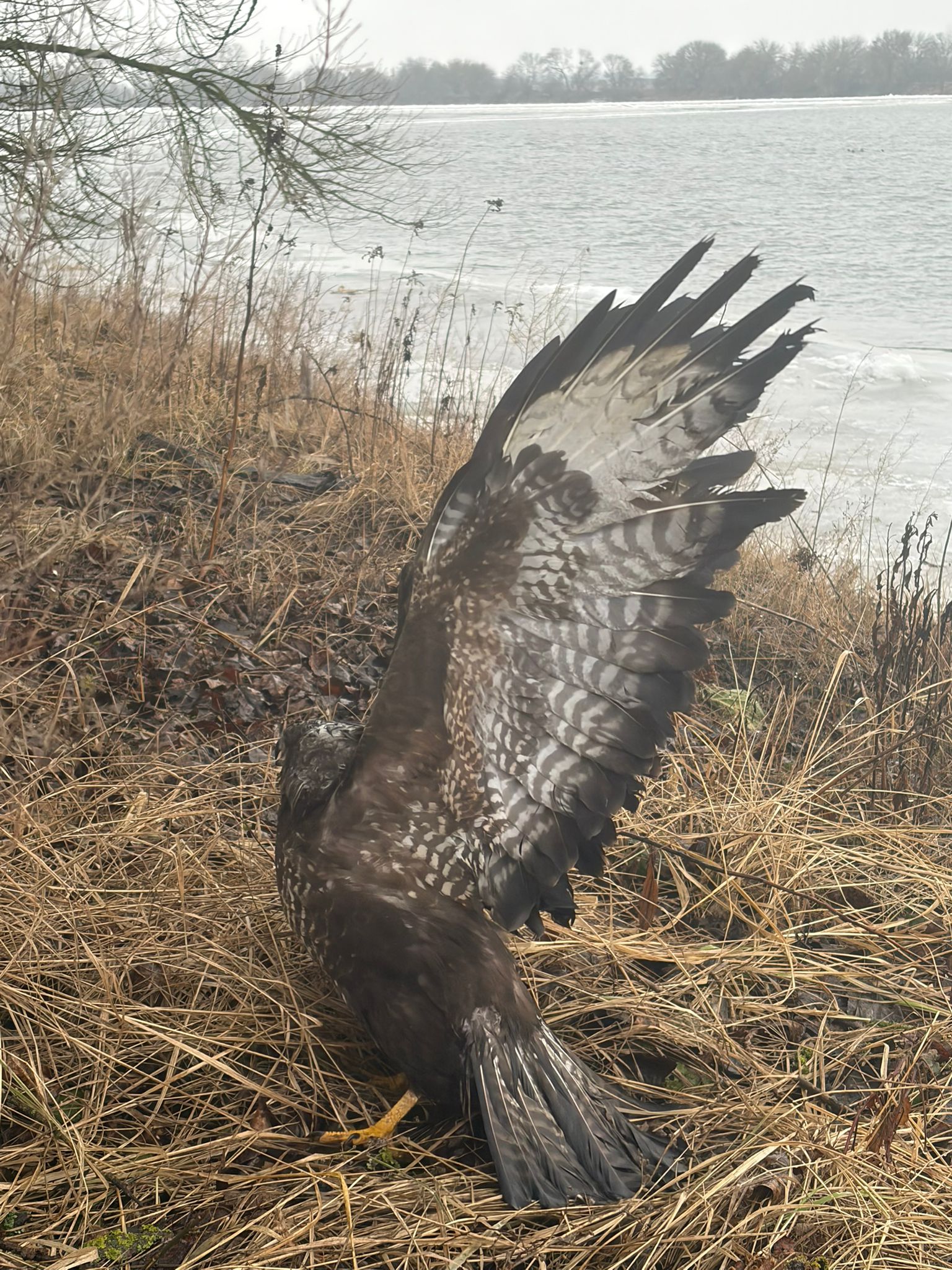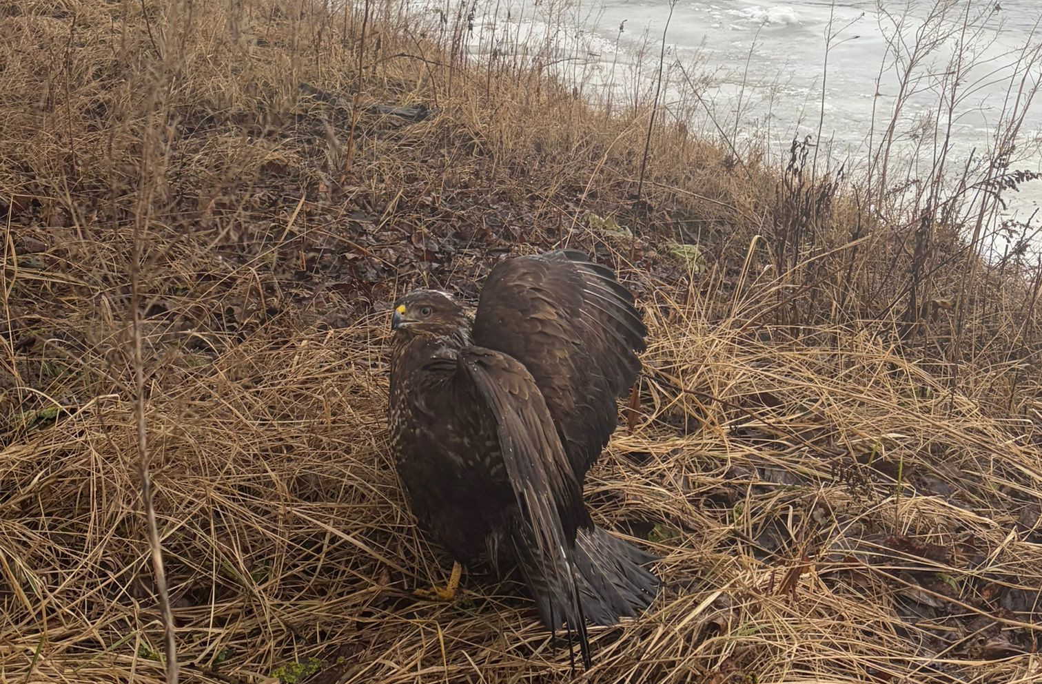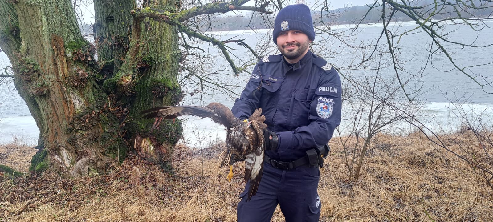 Osłabionego ptaka zauważyli patrolując nadwiślańskie tereny. Nie był w stanie wzbić się w powietrze i bez ich pomocy nie miałby szans na przetrwanie.