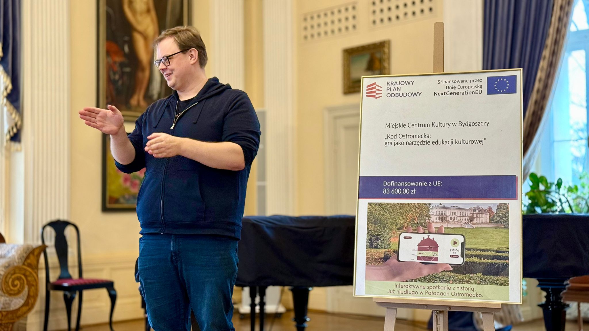 - To gra i przewodnik po Ostromecku dla dzieci i dorosłych - wyjaśnia koordynator projektu, Piotr Drozdowski. - Pracowaliśmy około pięciu miesięcy, żeby ją stworzyć. Ma przybliżyć historię tego miejsca, Pałacu Starego, Pałacu Nowego, parku w Ostromecku. Dzięki temu każdy będzie mógł szybko, w dogodnym dla siebie czasie, te miejsca poznać - dodaje.