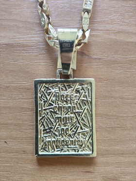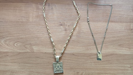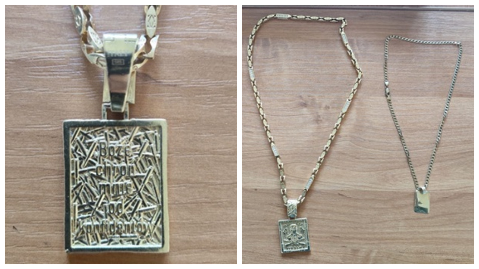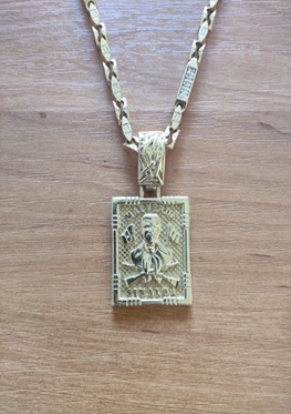 Adrian Z. posiadał wykonany ze złota i diamentów łańcuch z zawieszką przedstawiającą Jesusa Malverde, znanego jako meksykański Robin Hood i patron handlarzy narkotyków (fot. Prokuratura Okręgowa w Bydgoszczy)