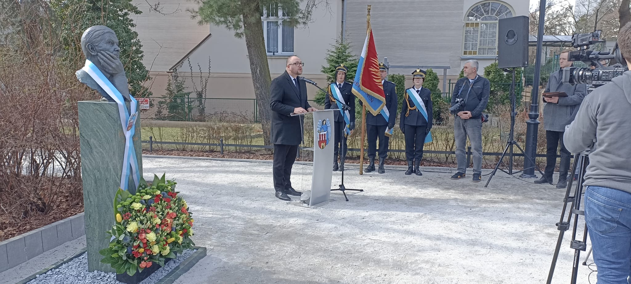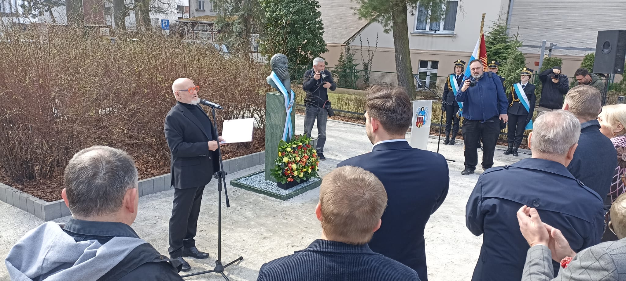 W samym sercu Torunia - u zbiegu ulic Tujakowskiego i Mickiewicza - odsłonięto popiersie Zbigniewa Herberta/fot. Monika Kaczyńska