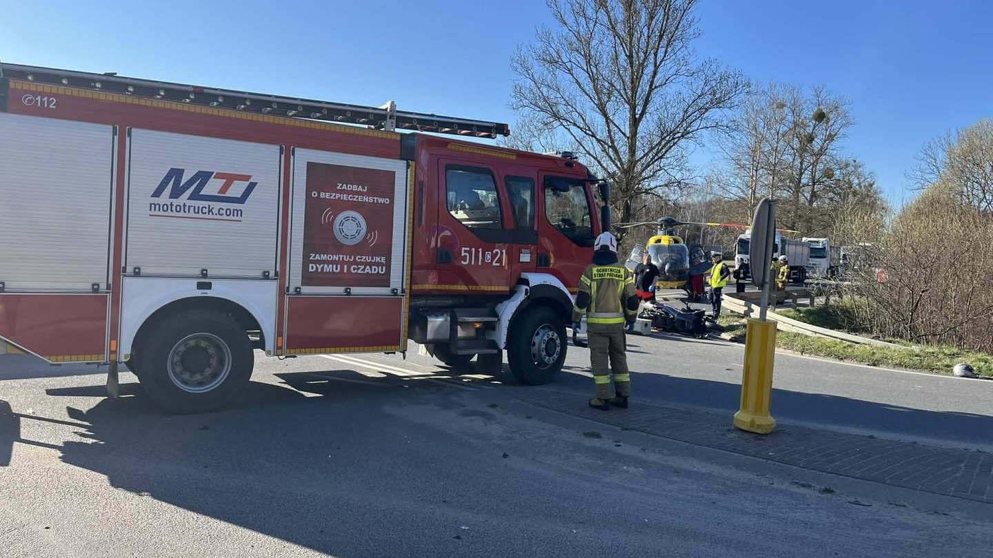 Poszkodowany został 62-letni kierowca jednośladu. Na miejsce wezwano śmigłowiec Lotniczego Pogotowia Ratunkowego.