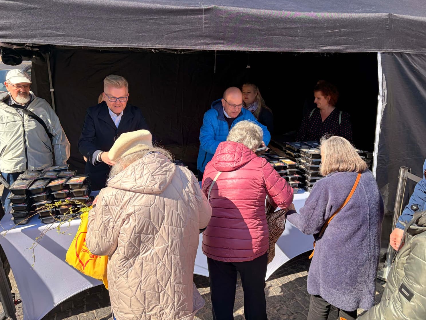 Spotkanie zorganizowano na grudziądzkim rynku. Dla najuboższych przygotowano kilkaset porcji. Była biała kiełbasa, sałatka, żurek i mazurek.
