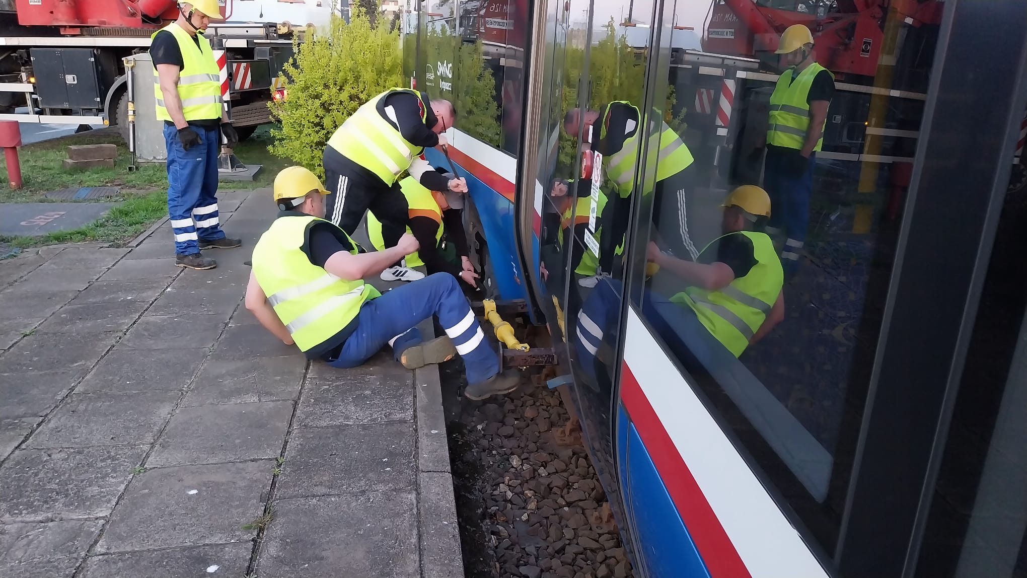 Służby pracują nad postawieniem pojazdu na tory/wideo: Marcin Kupczyk