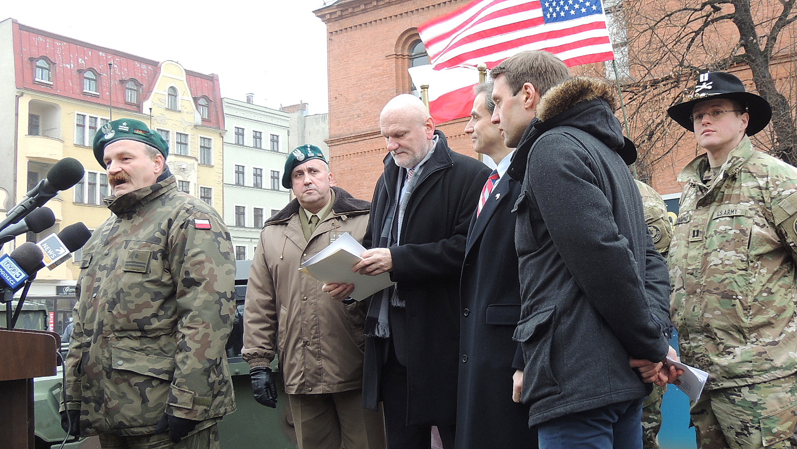 "Chciałem powiedzieć, że dziś jest dzień szczególny, ale tak naprawdę taki szczególny dzień jest w Polsce każdego dnia ponieważ każdego dnia polscy i amerykańscy żołnierze ćwiczą razem po to żeby zagwarantować, że każdy skrawek ziemi polskiej a równocześnie ziemi natowskiej jest absolutnie bezpieczny" - powiedział do zebranych ambasador Stanów Zjednoczonych Paul Jones.