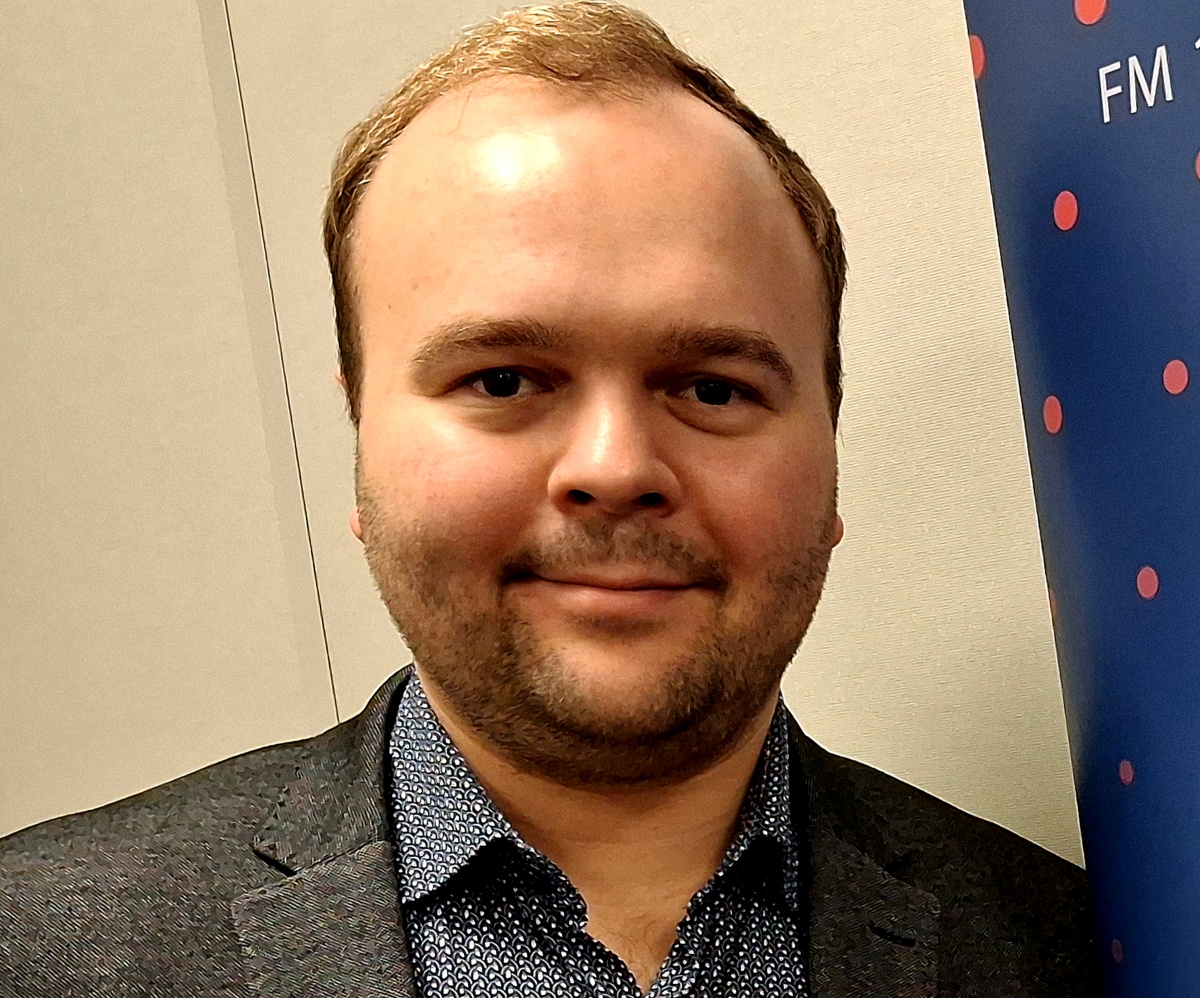 Błażej Bembnista w studiu Polskiego Radia PiK. Fot. Bogumiła Wresiłlo/PR PiK