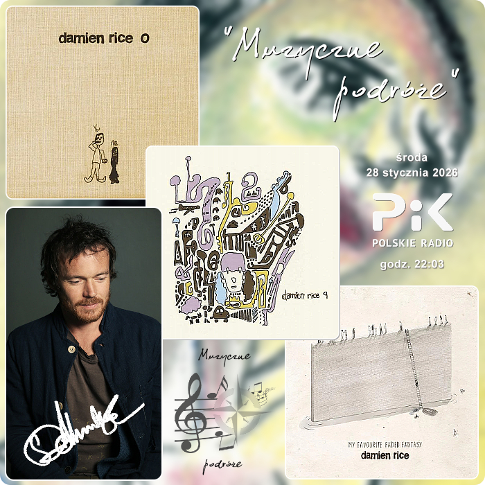 Ostatni w styczniu tego roku szlak „Muzycznej podróży” z Polskim Radiem PiK, jeszcze pobielony zimą, zawiedzie nas na „Szmaragdową Wyspę”, skąd pochodzi bohater dzisiejszej wędrówki na pięcioliniach... Pod swoim nazwiskiem tworzyć zaczął prawie ćwierć wieku temu, wydał jedynie trzy studyjne płyt, a jednak zaznaczył się w muzycznym świecie jako jeden najchętniej słuchanych „nudziarzy”, które to określenie wcale nie jest w tym przypadku obraźliwe :) DAMIEN RICE - on właśnie prowadzić będzie zainteresowanych Słuchaczy wieczornymi ścieżkami Irlandii, a może zupełnie innymi, osobistymi dla Państwa szlakami ich wspomnień. Wspomniane trzy albumy wystarczyły, by nazwisko artysty wpisać na listę wykonawców wypowiadających się za sprawą nastroju, kompozycji bardzo osobistych, wręcz intymnych, w których często wystarczy gitara i głos... I wygląda na to, że mimo długiej, bo trwającej już 12. rok przerwy wydawniczej, DAMIEN RICE wciąż potrafi czarować. Unika fleszy i reflektorów, a jego występy przybierają charakter kameralnych seansów. Przed fanami w Polsce wystąpił tylko jeden raz... 4 kwietnia 2023 roku w Centrum Kongresowym ICE Kraków.