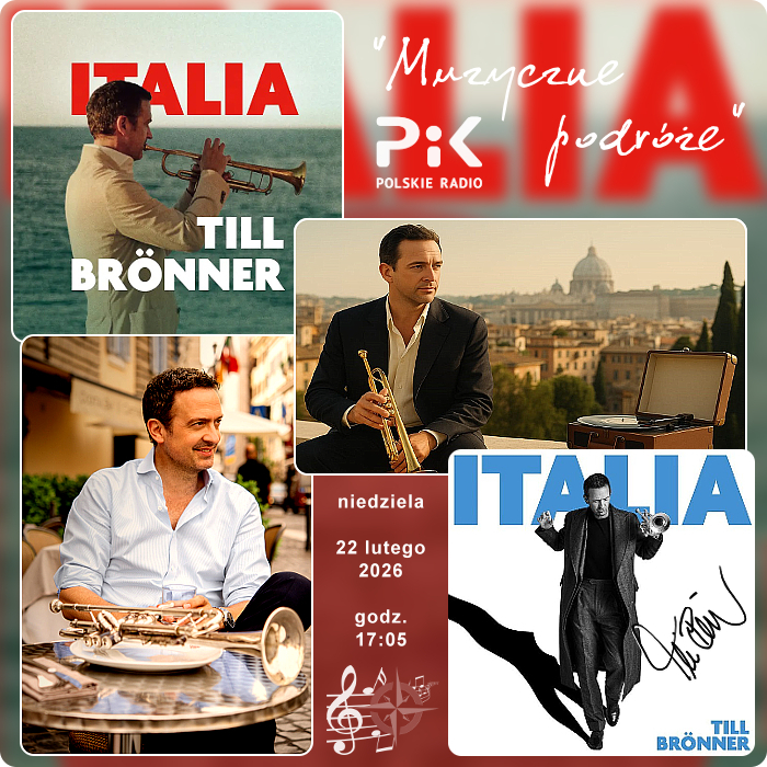 To będzie nietypowa, bo niedzielna i na przekór mglistej i wilgotnej aurze bardzo pogodna wędrówka na pięcioliniach. Słonecznym szlakiem „Muzycznej podróży” z Polskim Radiem PiK wybieramy się do Włoch. Nasz przewodnik dołączy do nas w Berlinie, bo tam osiadł, choć rzymska codzienność wpisała się w jego dzieciństwo, a sentyment dla włoskiej piosenki pozostał z nim na zawsze! Jak mówi popularne przysłowie - „Czym skorupka za młodu nasiąknie, tym...” - ale przecież naszemu bohaterowi daleko jeszcze do starości ;) Na początku maja br. skończy 55 lat, a zatem - trzymając się życzeń - minął dopiero co półmetek :) TILL BRÖNNER - „niemiecki Chet Baker” - jak mówi o nim środowisko jazzowe, doceniając jego kunszt, styl i nastrój muzycznych wypowiedzi. Jest kompozytorem, producentem muzycznym, trębaczem ale również wokalistą jazzowym. Kiedyś w naszej wędrówce na pięcioliniach zabrał nas do Rio de Janeiro, a dzisiaj prowadzi ścieżkami miłości do słonecznej Italii :) Taki tytuł nosi jego ubiegłoroczny album pełen wspomnień piosenek i kompozycji charakteryzujących włoską scenę muzyczną od lat 60-tych do 80-tych ubiegłego wieku, te zaś z pewnością ulokowały się również w pamięci wielu z Państwa :) A zatem podróż sentymentalna? Jest taka szansa, o ile nuty i słowa w jazzowych interpretacjach TILLA BRÖNNERA i jego Przyjaciół obudzą Państwa uśmiech i przywołają znajome słowa, być może również kadry przeszłości... A może warto mieć album „Italia” blisko siebie na dłużej, wśród swoich ulubionych? :)