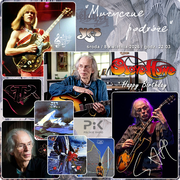 Drugi w kwietniu szlak „Muzycznej podróży” z Polskim Radiem PiK ściele się pod kapryśnym niebem, ale... wiadomo - kwiecień-plecień :) Mam nadzieję jednak, że podróżujący z nami zachowali dobrą pogodę wewnętrzną, a przyda się ona w niesieniu urodzinowego tortu i bukietu życzeń przewiązanego kokardą serdecznych pozdrowień od polskich sympatyków klasyki rocka, bo też oni najszybciej wspomnieli udział naszego bohatera w tworzeniu pojęć „rock symfoniczny” czy „rock progresywny”, choć przecież nie tylko na tych terytoriach udzielał się ze swoim talentem gitarzysty, kompozytora, klasyka... STEVE HOWE, bo o nim mowa, najczęściej kojarzy się z dorobkiem zespołu YES i tych akcentów ułożyło się na drugim kwietniowym szlaku najwięcej. Jednakże warto wspomnieć również udział Mistrza pod innymi szyldami. W końcu przecież przywołuje on choćby skład ASIA, której to supergrupy był współtwórcą. Nie zapomnieliśmy o jego artystycznej komitywie z innym Stevem - Mistrzem Hackettem. 8 marca br. STEVE HOWE skończył 79 lat i musieliśmy znaleźć trochę miejsca na nuty i słowa z jego autorskiego dorobku. Mało czasu, a dźwięków pcha sie na szlak mnóstwo...