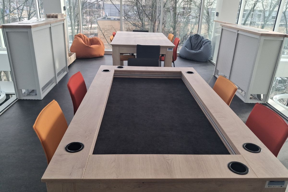 - strefa coworking: miejsce spotkań dla młodzieży i dorosłych z możliwością aranżacji przestrzeni w zależności od potrzeb;