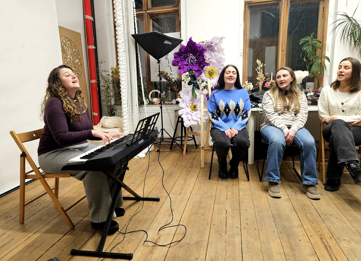 Olena Maruniak-Gaidychuk gra na tradycyjnym ukraińskim instrumencie - bandurze - oraz prowadzi chór dla kobiet i dzieci. Uważa, że pieśnią można wyśpiewać wszystko - radość, ale i smutek. „Ukraińcy kiedy śpiewają, to jakby poszli do psychologa. Wyśpiewają smutek i jest im lżej na sercu” - mówi jedna z kobiet. Z kolei dla dzieci śpiewanie ukraińskich pieśni to szansa na kontakt z językiem i poznanie historii swojej ojczyzny. Niektóre dzieci wierzą, że śpiewając pomagają walczącym żołnierzom. Takiego zdania jest Daniel, który mówi podczas próby: „jesteśmy silni, pobijemy Rosjan na 2000 %”.