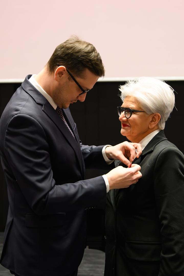 - Ja nigdy o tym nie myślałam, ponieważ to jest moje w ogóle pierwsze takie, poważne odznaczenie. Sama jakoś tak nie występowałam nigdy o odznaczenia dla nikogo. To jest taki świat poza mną, ale oczywiście cieszyłam się z każdego medalu, który mi przyznawały jakieś towarzystwa, na przykład „Medal Sulimy Kamińskiego”, bardzo dla mnie ważny. Pierwsze odznaczenie, to są wspomnienia, ale z takiej młodości, bo to z osiemdziesiątego któregoś roku, kiedy pracowałam w Pałacu Młodzieży i tam moja dyrektorka Dorota Kempka wręczyła mi „Medal Janka Krasickiego”. Pamiętam potem spłonął magazyn z tymi medalami.