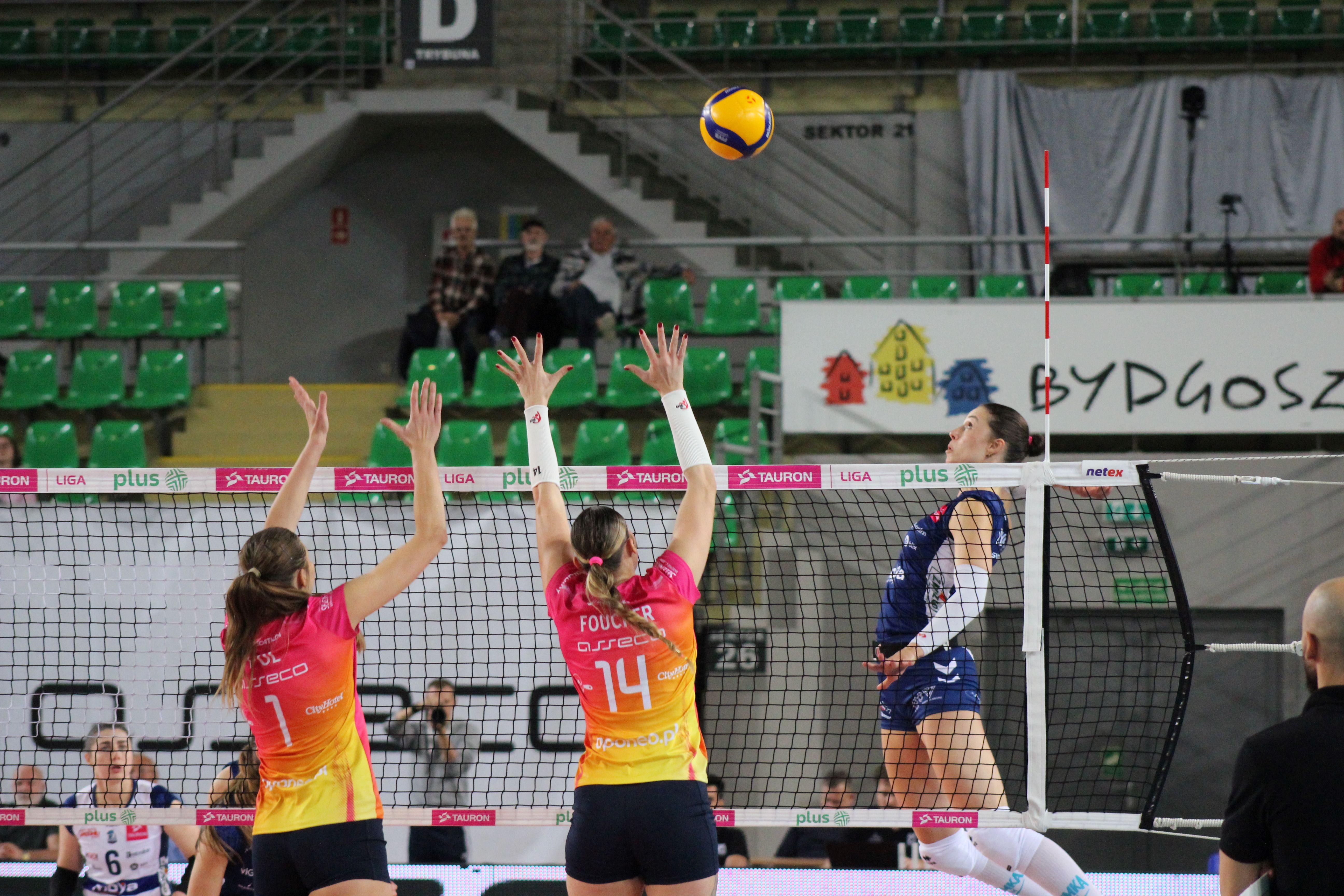 Dużo emocji dostarczyło spotkanie Metalkas Pałacu Bydgoszcz z Sokołem & Hagric Mogilno w 3. kolejce Tauron Ligi. Ostatecznie nieznacznie lepsze okazały się bydgoszczanki, triumfując we własnej hali 3:2.
