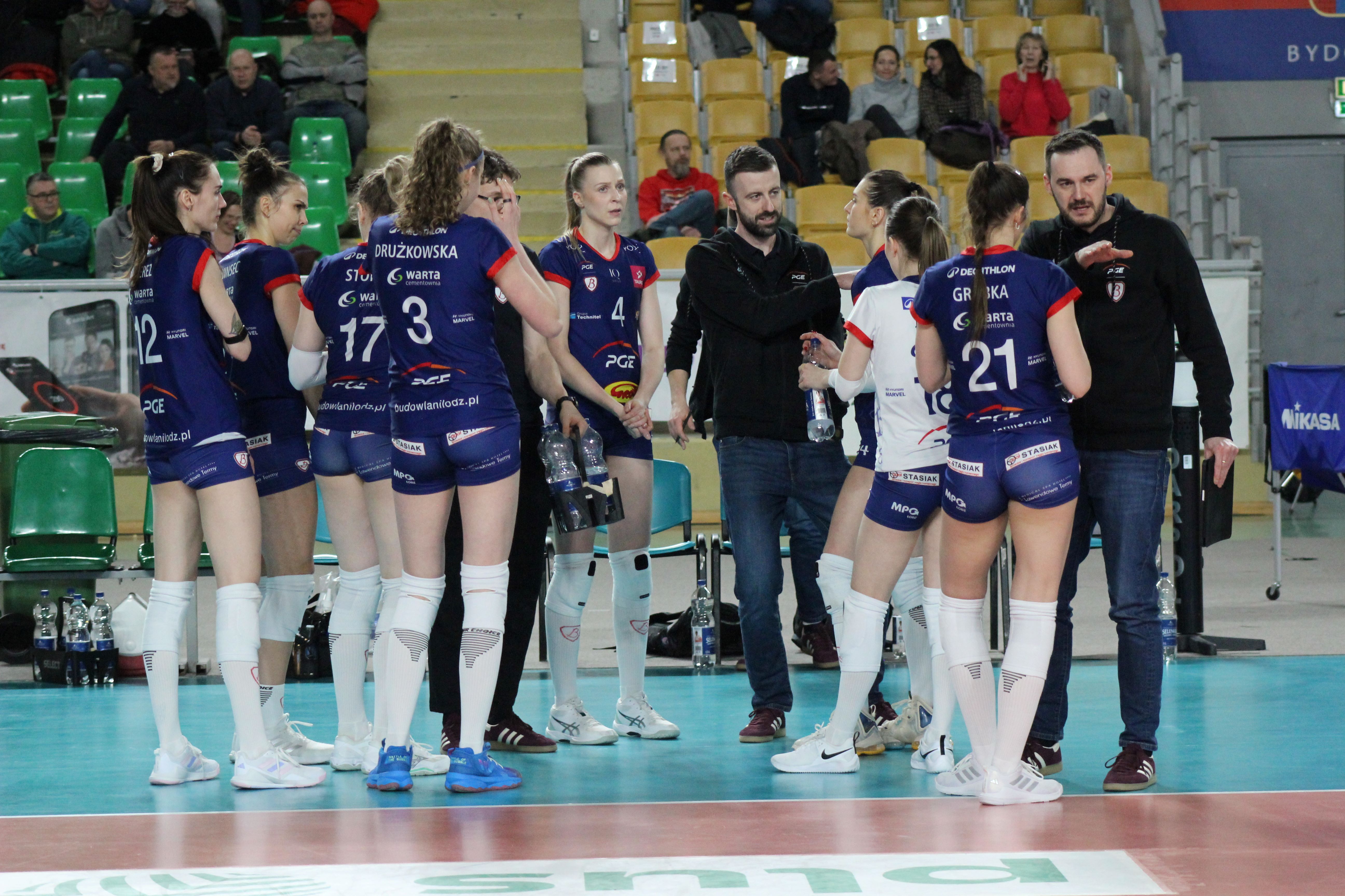 Pierwszy set zaczął się obiecująco. Od stanu 9:9 rywalki zdobyły jednak siedem punktów z rzędu (16:9). „Pałacanki” goniły (19:21), lecz nie złapały przyjezdnych. W drugiej partii Łodzianki szybko odskoczyły (8:3). Bydgoska ekipa znów zerwała się do odrabiania strat (12:13), ale potem parkiet należał do Budowlanych. Zamknęły one odsłonę w czwartej próbie. Trzecia część spotkania nie zaskoczyła. Ekipa gości przejęła inicjatywę (12:7), a następnie nie pozwoliła przeciwniczkom na zbyt wiele.