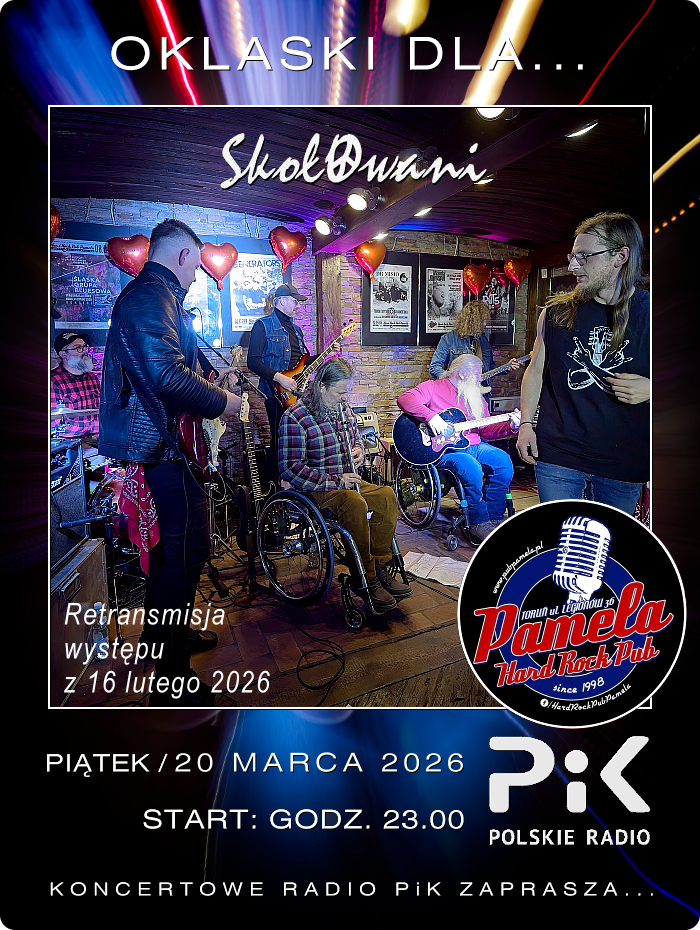 W pierwszy piątek astronomicznej wiosny i u progu wiosny kalendarzowej, sięgamy do zapisu zimowego jeszcze spotkania z bardzo ciekawym składem. W „Koncertowym Radiu Pik” prezentujemy retransmisję występu formacji SKOŁOWANI na scenie toruńskiego HARD ROCK PUBU PAMELA. Wieczór z tym składem odbył się 16 lutego 2026 roku.