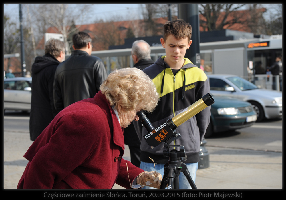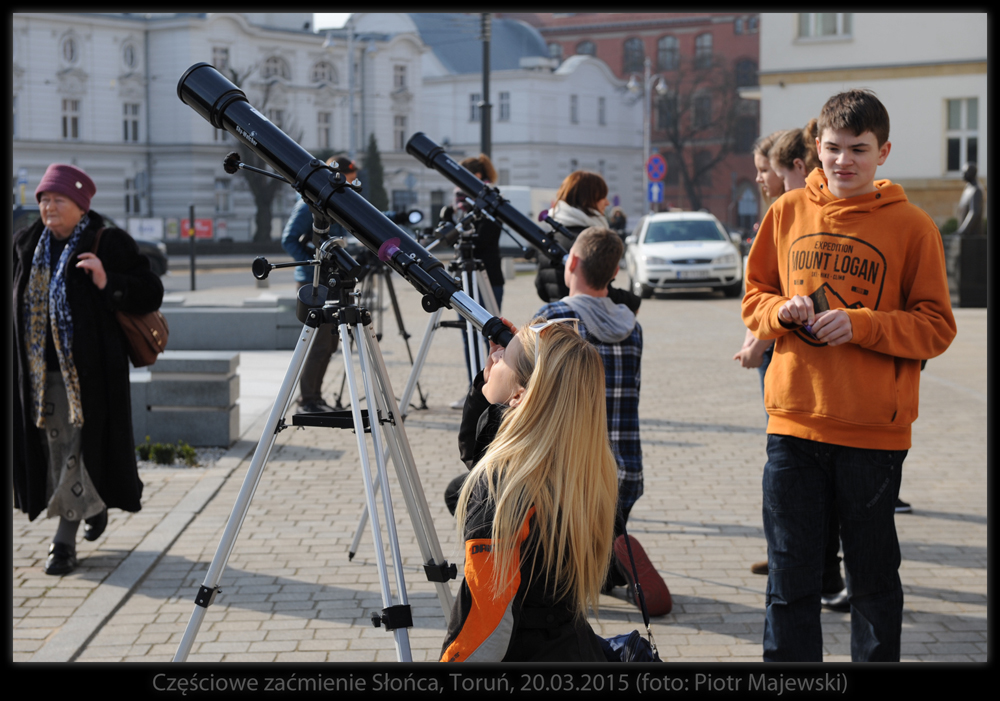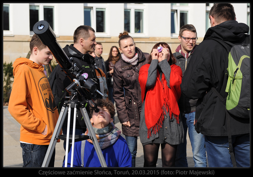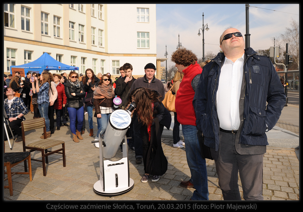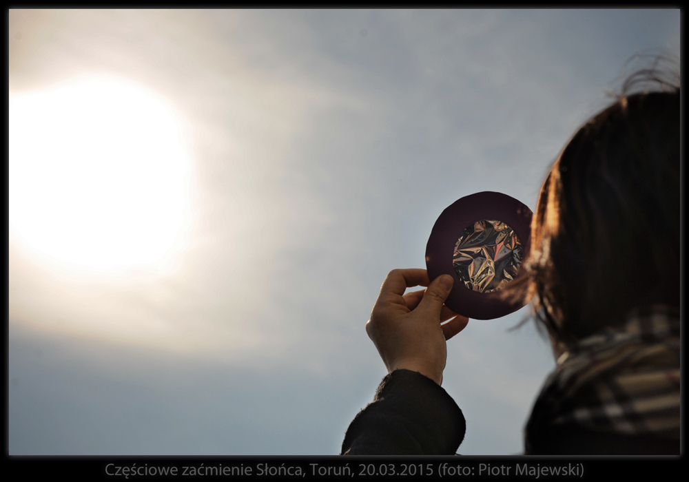 Część obserwatorów samodzielnie zaopatrzyła się w materiały do bezpiecznego śledzenia przebiegu zaćmienia - od folii mylarowej, przez szkło spawalnicze, na kliszach rentgenowskich kończąc. W maksimum zjawiska Księżyc przesłonił Słońce w 75%. Następne tak głębokie zaćmienie widoczne z Polski - w 2026 roku.