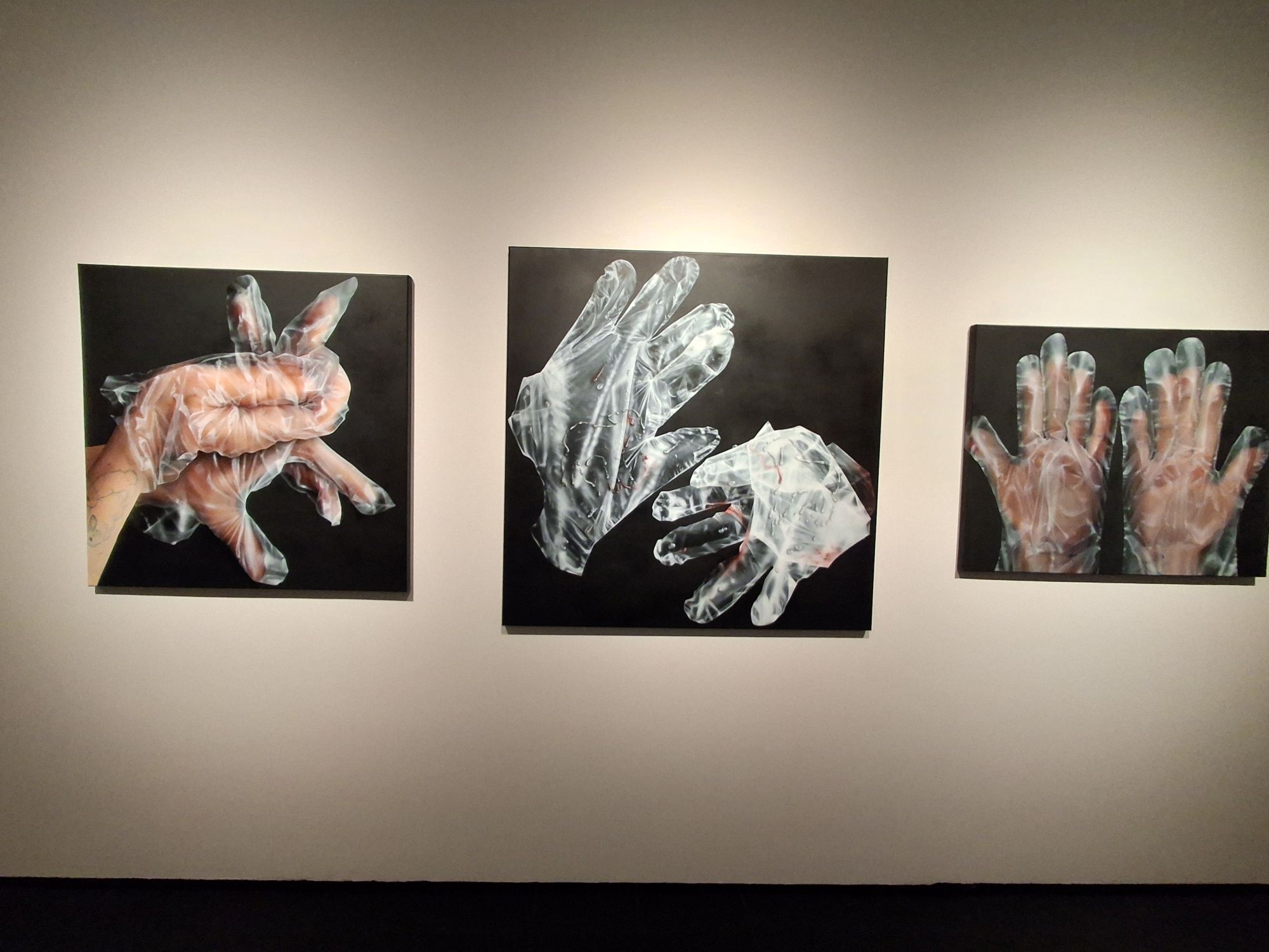 Niektóre prace powstały przy wykorzystaniu jednorazowych materiałów, jak np. chusteczki higieniczne. - Praca na materiałach jednorazowych to jest spora część tej wystawy - mówi autorka. - Interesuje mnie zjawisko jednorazowości, tymczasowości, które dotyczy nas, jako ludzi. Nasze życie jest ograniczone w pewien sposób, biorąc pod uwagę inne byty. Te jednorazowe doświadczenia, krótkie relacje też się nam przydarzają - dodała.