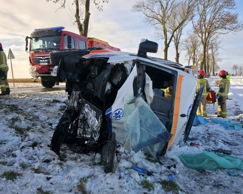 Trasa Wągrowiec-Damasławek: wypadek karetki pogotowia. Nie żyje kierowca ambulansu [wideo, zdjęcia]