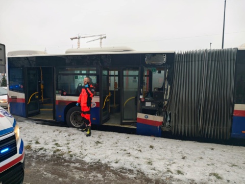Autobus zderzył się z ciężarówką w Bydgoszczy. Są poszkodowani [zdjęcia]