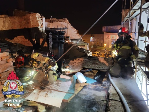 Płonął strop budynku na toruńskiej Starówce. Nikt nie został poszkodowany [zdjęcia]