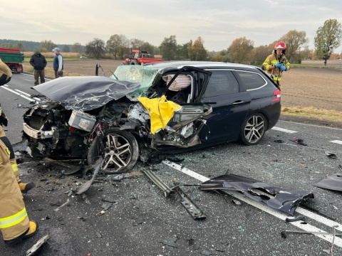 Zderzenie osobówki, lawety i ciągnika na krajowej „15", w powiecie wąbrzeskim [zdjęcia]